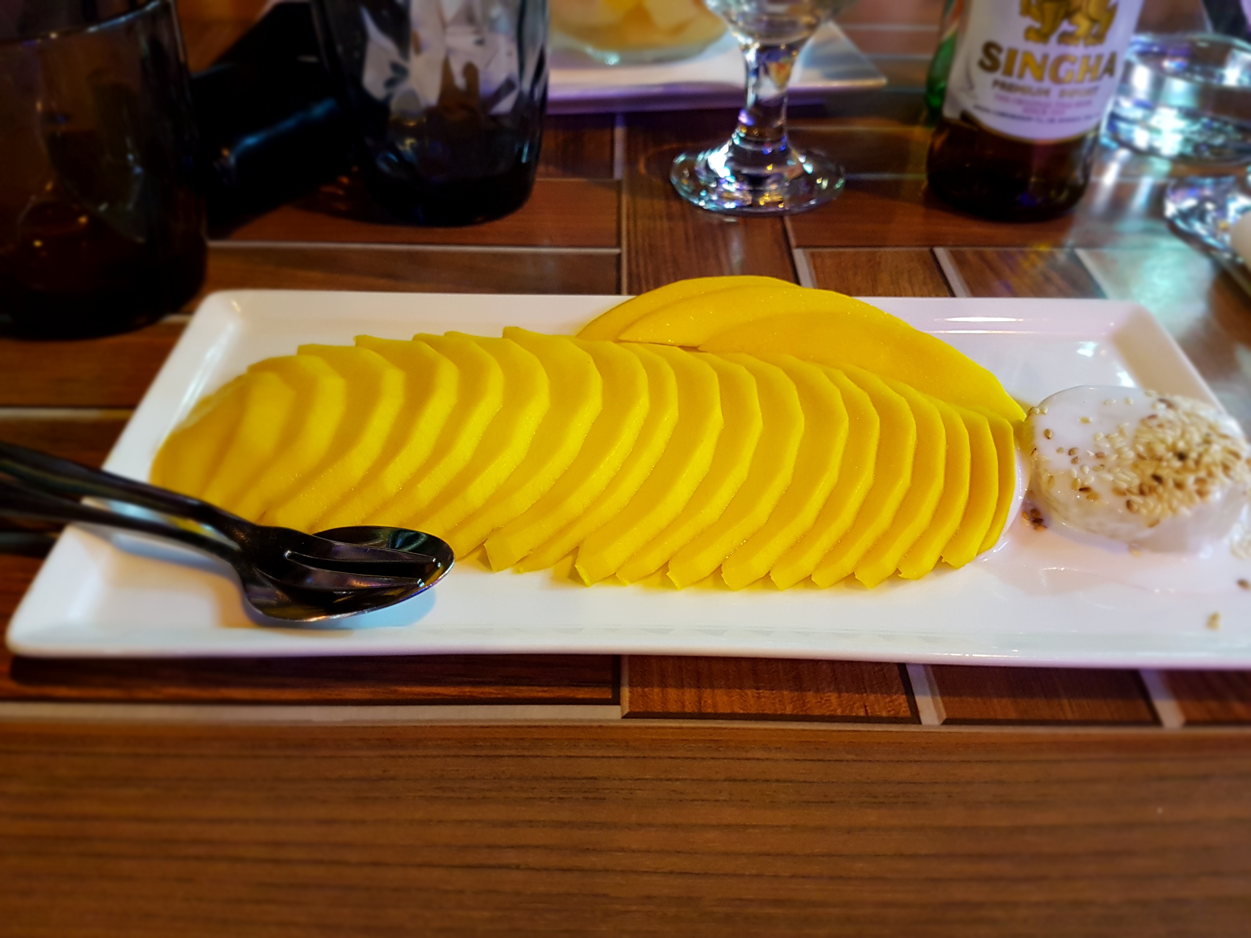 C'était rapide et convivial. J'ai mangé du poulet panang et c'était super. La mangue et le riz gluant suffisaient pour 2 personnes.