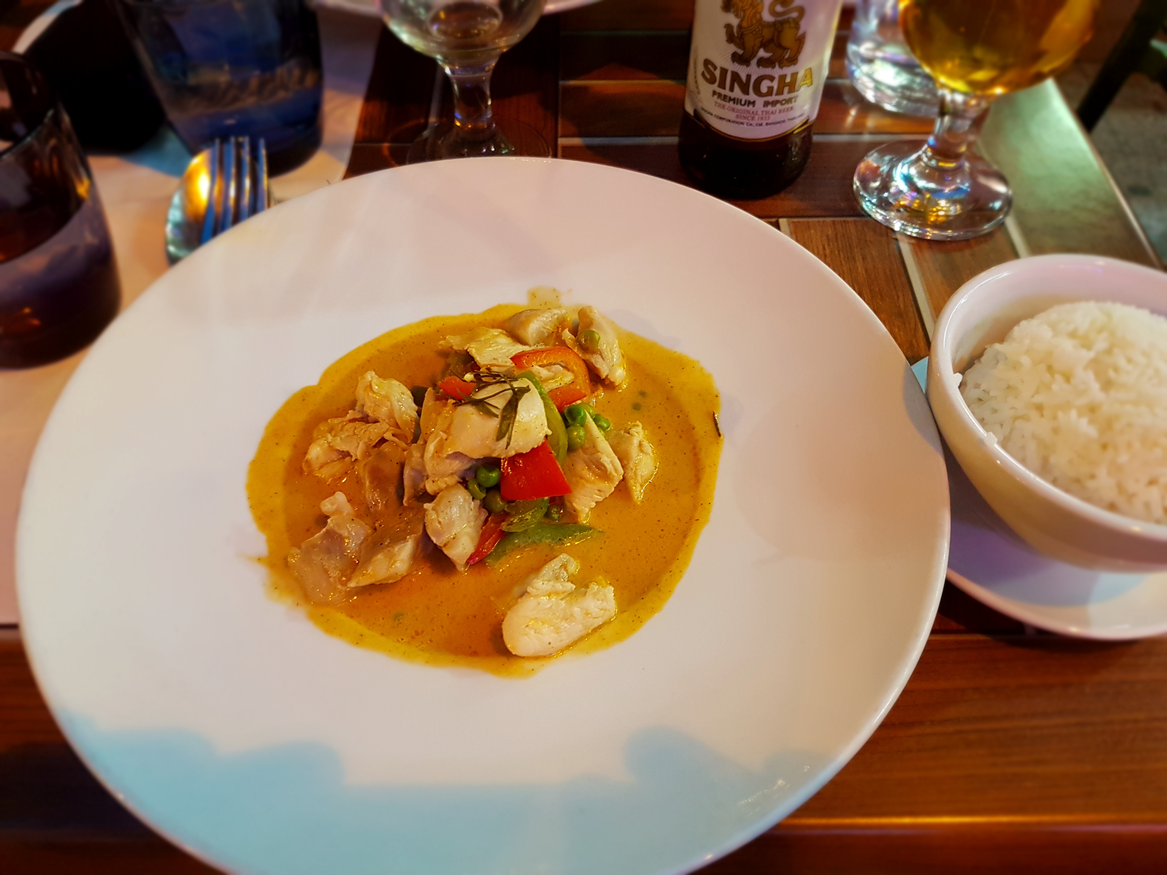 J'ai pris un plat kèng kiew wane(poulet au curry vert et lait de coco), vraiment excellent. Il n'y avait pas trop de monde dans le restaurant ce soir là, en semaine . Le service, comment dire, il était vraiment excellent, un trait d'humour, de la politesse, sans parler de la beauté sublime des deux serveuses 😅😊