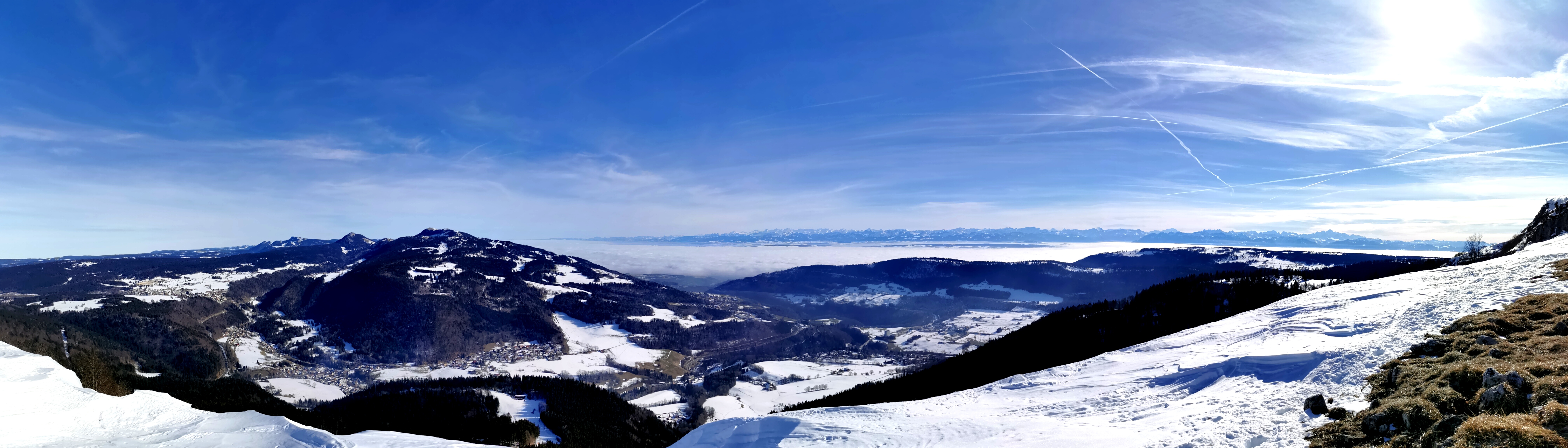 Très beau départ en raquettes pour Le Mont d'or et la vue des Alpes