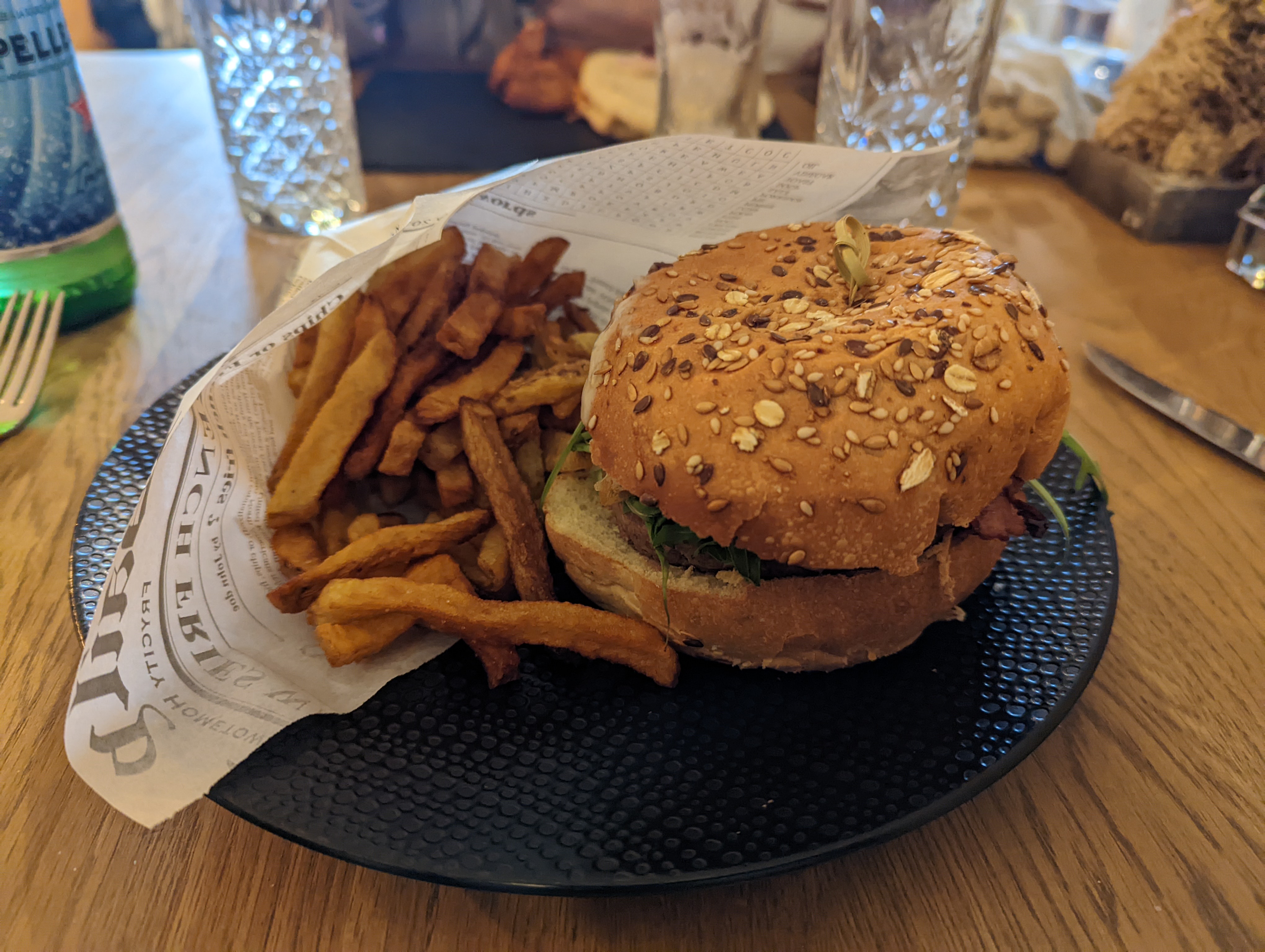 De jolie plat mais un peu cher pour ce qu'il y a dans l'assiette. Les frites avec le burgers étaient vraiment trop sèches, mais celle demandé par la suite au top (mais 7€ l'assiette de frites en plus et sans elle j'aurais encore eu faim) Après le service était top et l'accueil aussi.