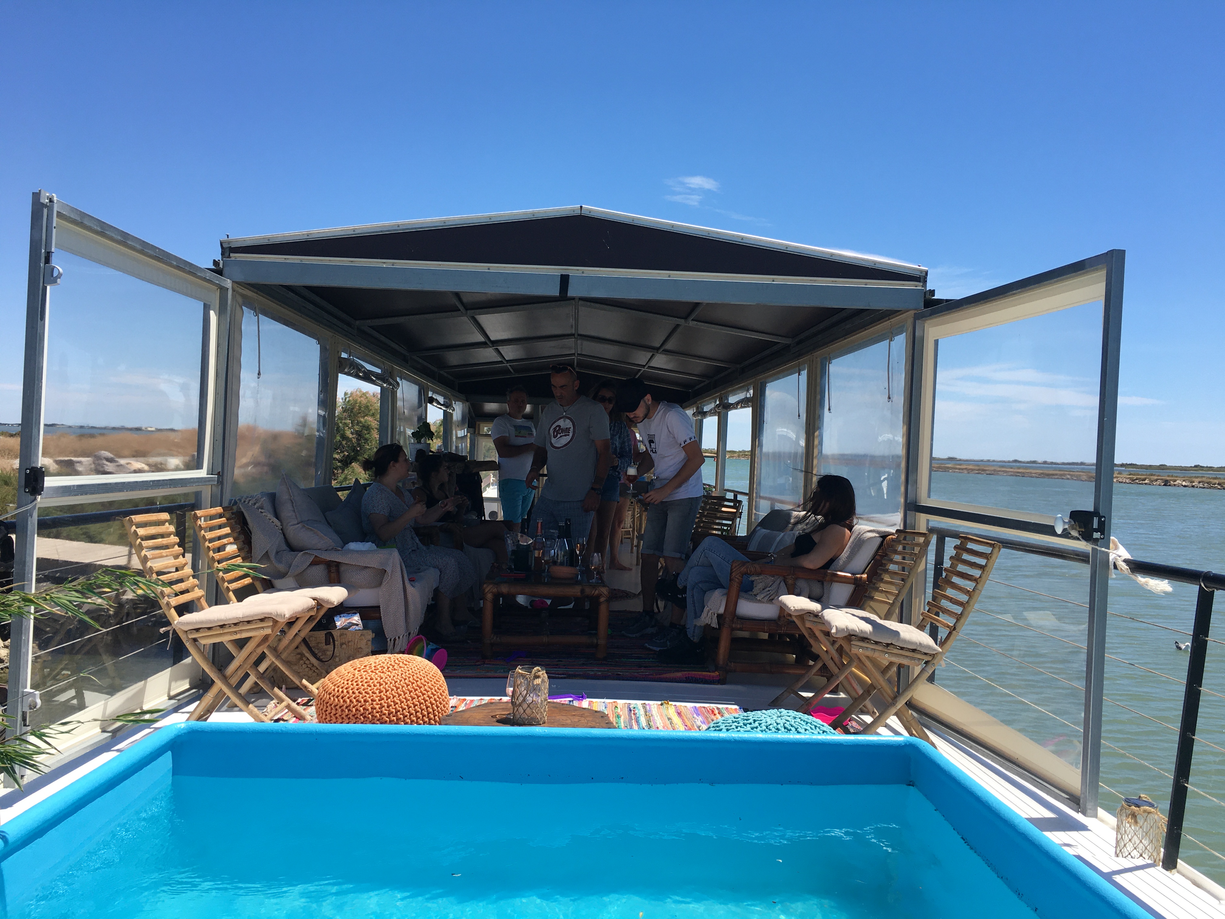 Un lieu magique en compagnie du capitaine très sympa, et cordon bleu en prime. Idéalement placé face à l'abbaye de Maguelonne. A noter que vous pouvez garer votre voiture gratuitement face à la péniche en toute sécurité alors que les simples visiteurs payent à la journée. Le grand plus et la gentilesse du maitre des lieux, pour vous déplacez il vous prétéra des VTT, fort agréable pour se rendre à la plage, à l'abbaye, ou simplement découvrir les lieux magiques aux alentours. On notera les apéritifs et mets préparés avec des vins et produits locaux absolument délicieux, les cabines spacieuses et propres, un lieu idéal pour se ressourcer au calme absolu en couple, une piscine sur le pont avant, des transats pour prendre le soleil, un restaurant bar spacieux. C'est pour moi le lieu idéal pour découvrir en toute sérénité la majesté de cette région. 5 étoiles voir bien plus si vous vous attardez à contempler le ciel le soir à l'avant de la péniche.