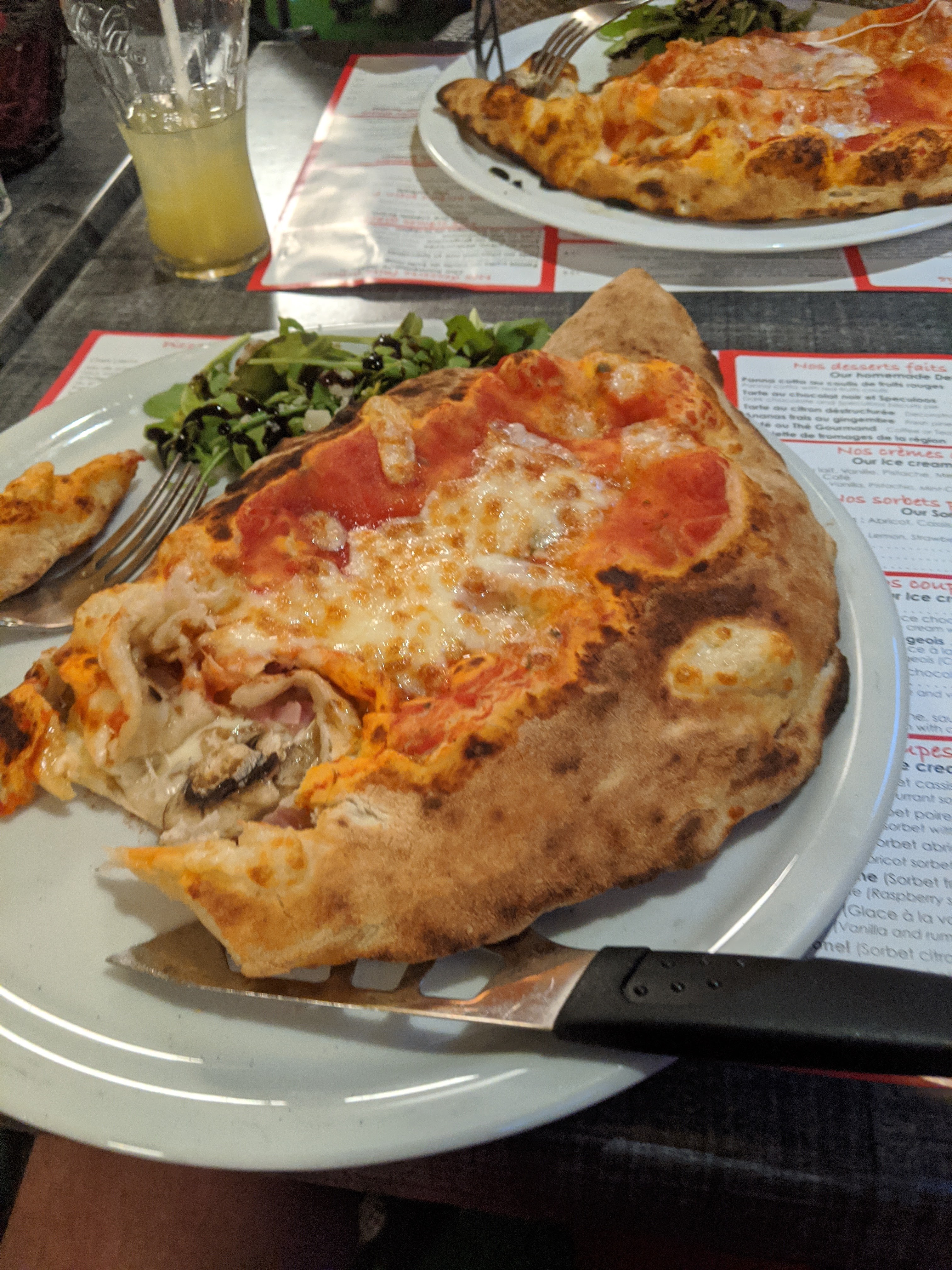 Super pizza, bon vin, le service aurait pu être plus sympathique. Allez manger une pizza.