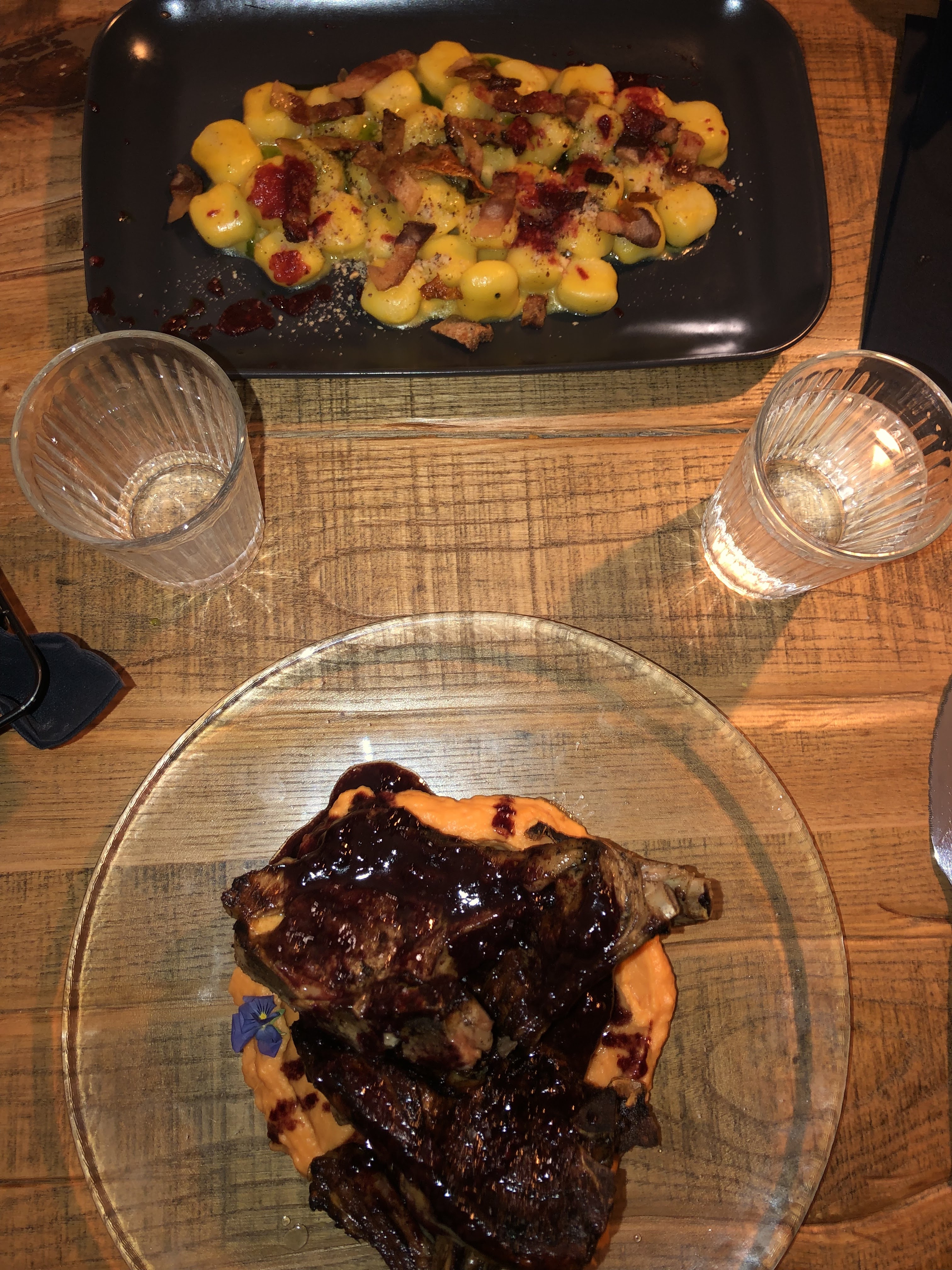 Nous avons reçu un accueil très sympathique et avant même de nous asseoir, les plats (en français) ont été traduits en anglais et nous ont été expliqués en détail. En entrée, nous avons eu l'un des plateaux composé de poulpe, de gnocchis, de salade, de chou-fleur violet et de poisson pané. C'était très joliment préparé et avait un goût excellent. Comme plats principaux, nous avons eu le burger et le risotto, qui complétaient également le menu ce soir-là. Le burger était incroyablement juteux et très savoureux. Le risotto était un peu éclipsé, mais nous l'avons quand même beaucoup apprécié. Dans l'ensemble, c'est vraiment fortement recommandé, d'autant plus qu'il existe différentes créations de saveurs que l'on ne connaît pas dans les restaurants normaux. Nous avons été accueillis très amicalement et avant même de nous asseoir, les plats (puisqu'en français) étaient traduits en anglais et expliqués en détail. En entrée, nous avons mangé une des assiettes avec du poulpe, des gnocchis, de la salade, du chou-fleur violet et du poisson en pâte. C'était très bien préparé et c'était excellent. Pour le plat principal, nous avons eu le hamburger et le risotto, qui constituaient un ajout supplémentaire au menu ce soir-là. Le burger était incroyablement juteux et très savoureux. Le risotto était un peu dans son ombre, mais nous avions quand même un très bon goût. Dans l'ensemble, c'est vraiment fortement recommandé, d'autant plus qu'il existe différentes créations de saveurs que l'on ne connaît pas du normal.