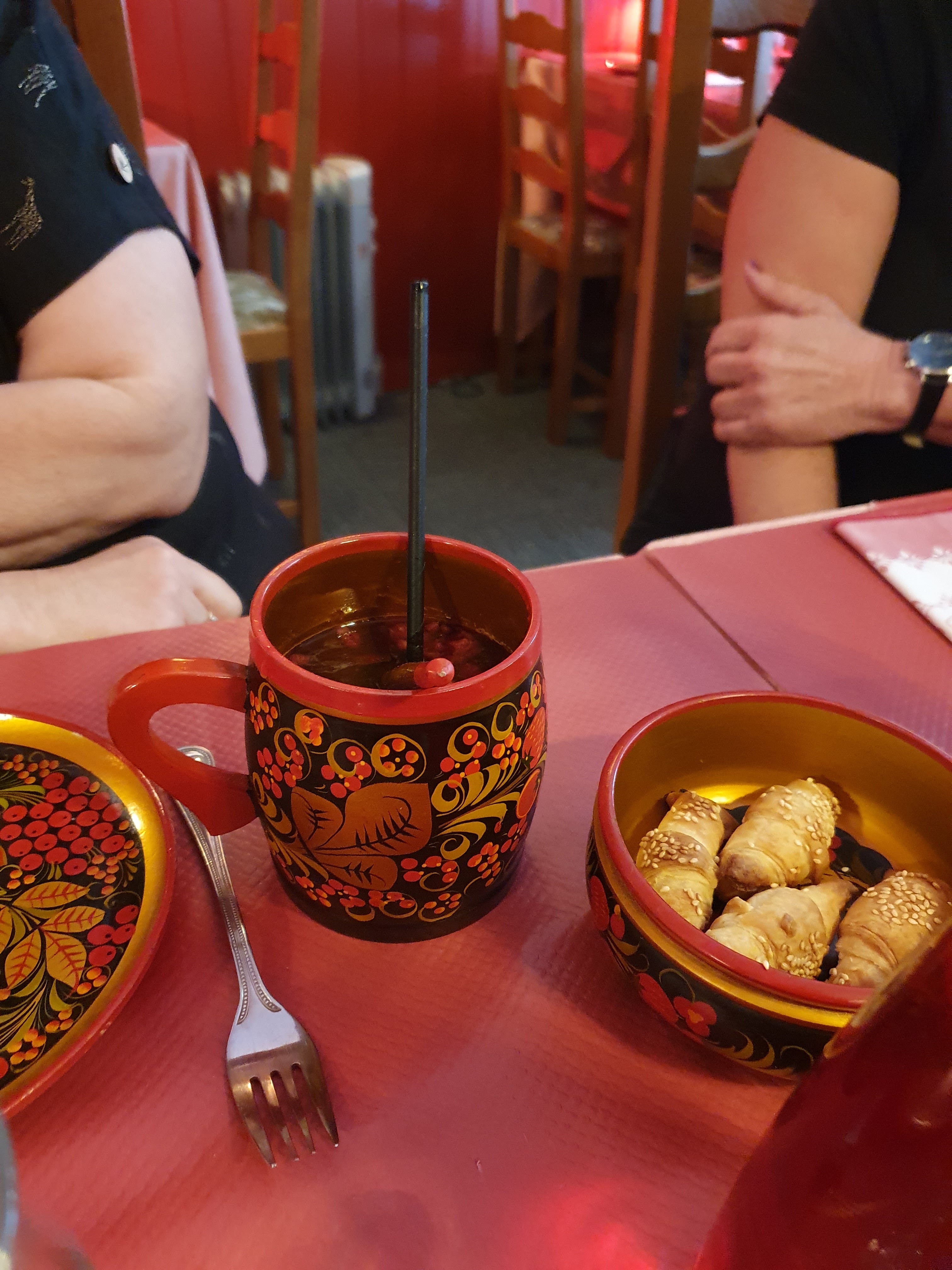 Une bonne adresse pour manger Russe à un prix raisonnable dans une ambiance sympathique. Nous avons pris le menu de base, constitués de plats typiques qui ne sont pas de la gastronomie sophistiquée, mais plutôt ce qu'on imagine être des plats de repas familiaux en Russie. Et c'est certainement préparé maison ! A noter, des coeurs aux couleurs de l'Ukraine sur la devanture, que j'imagine sincères : une invitation à ne pas boycotter ce restaurant dans le terrible contexte actuel.