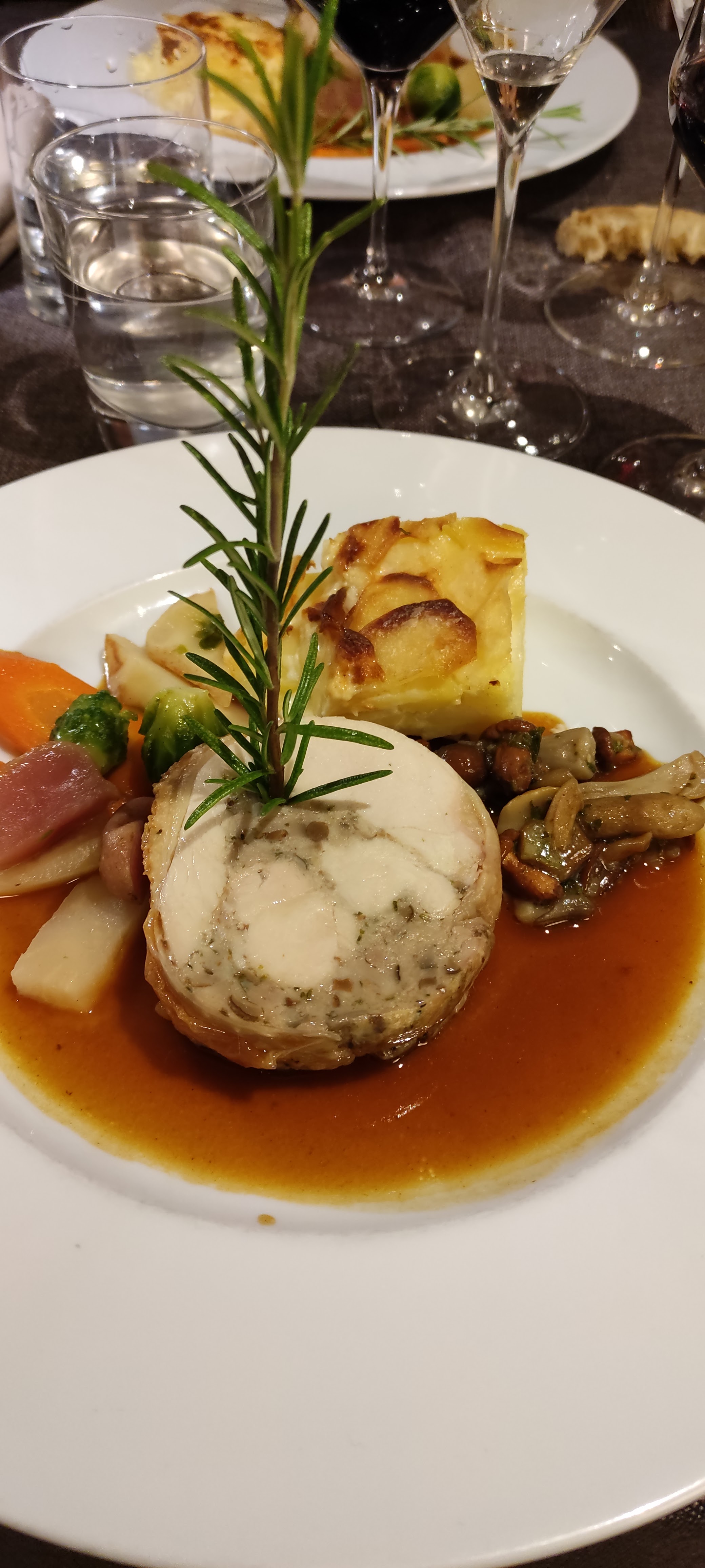 Repas correct mais sans exception. Le plat veau aux girolles avec gratin dauphinois. La sauce été bonne mais le gratin très gras, beaucoup d'huile au fond du plat. Dessert sans plus une boule de glace sans gout. Dommage personnel très sympa et super cadre.