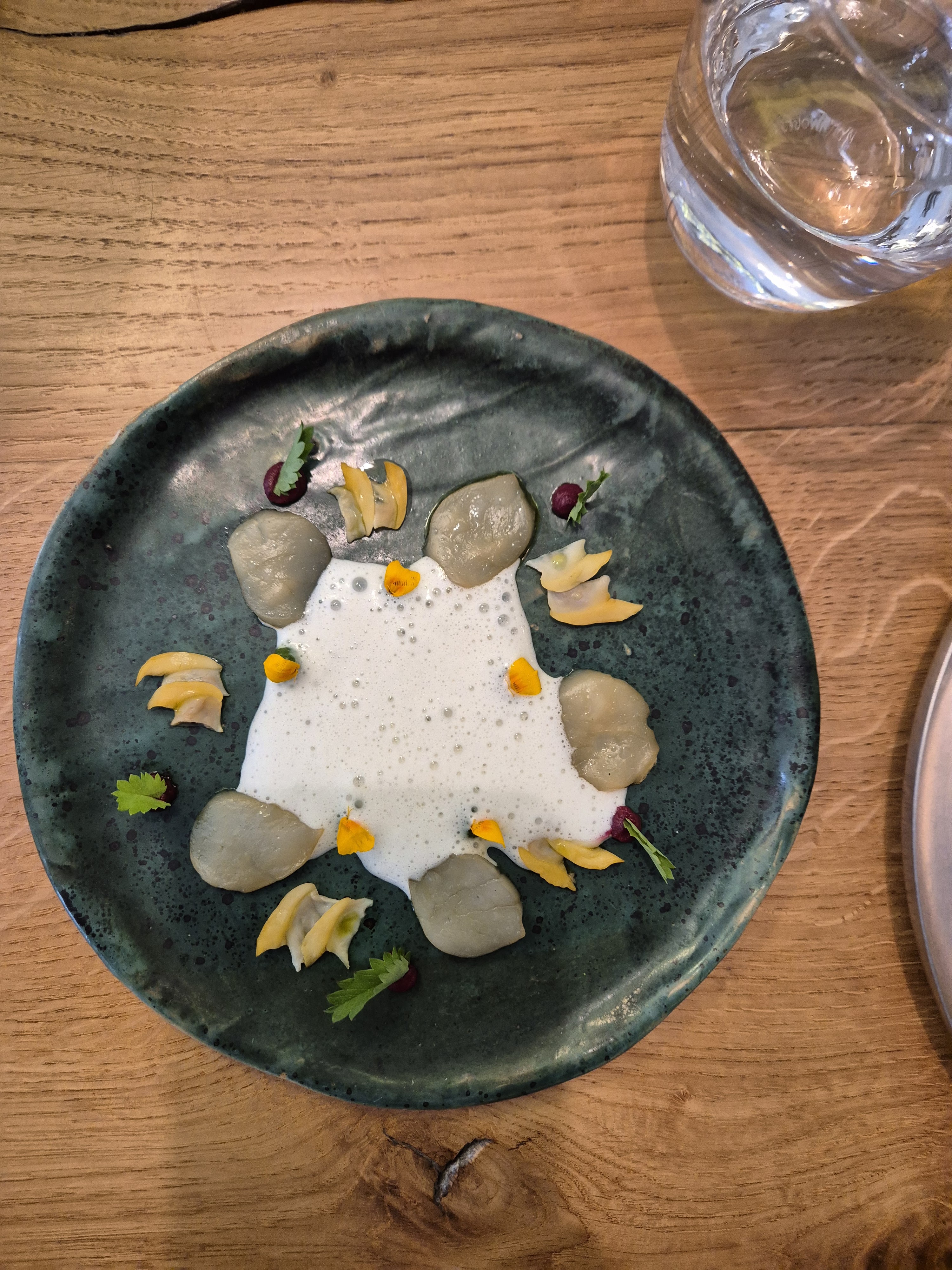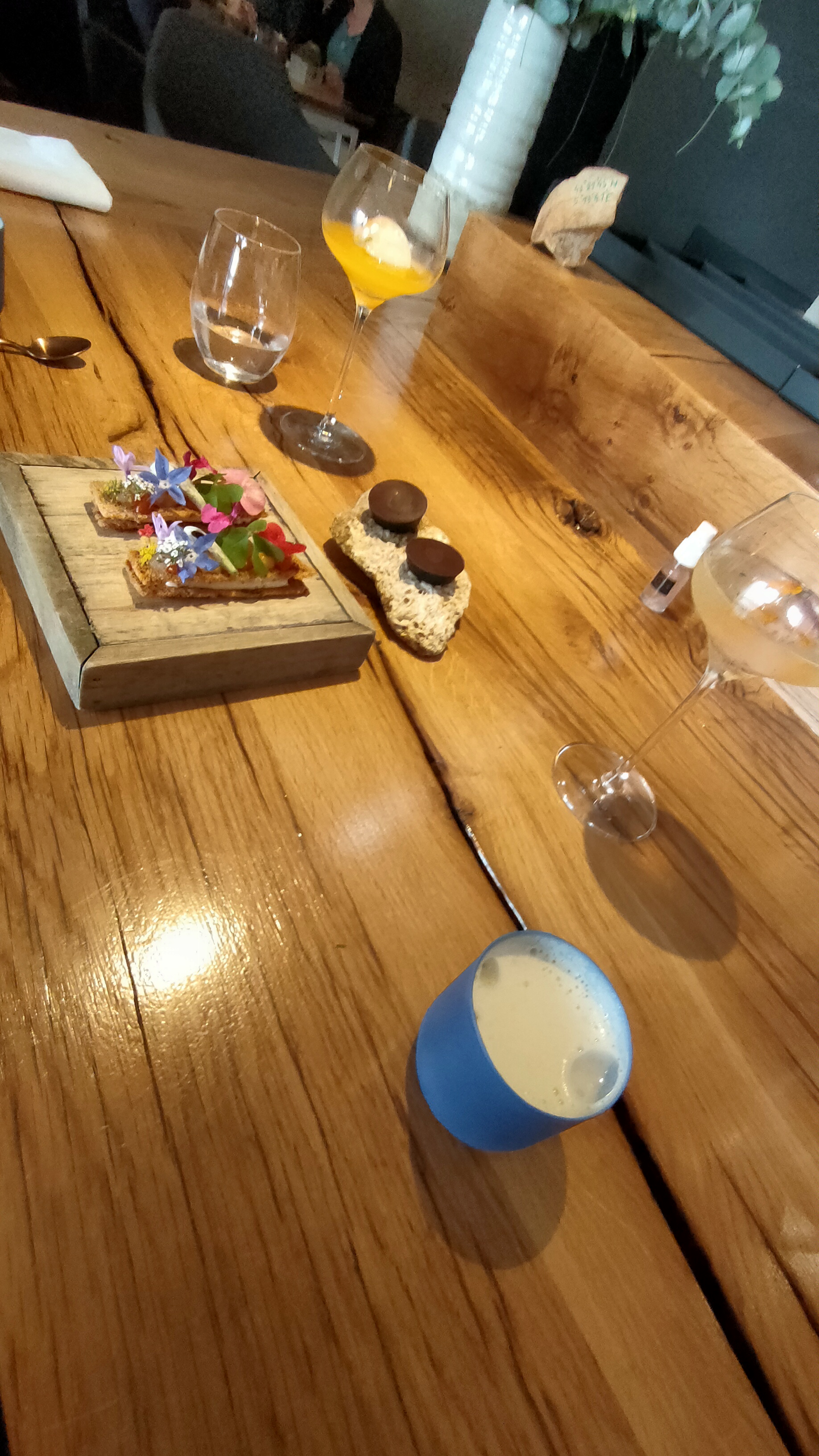 Univers tout simplement incroyable, du visuel des assiettes au service, de la proximité de cette équipe hyper concentrée et chaleureuse au vocabulaire employé... On embarque bel et bien dans un voyage sensoriel et émotionnel, généreux, goutu et tranchant. J'aurais aimé être en meilleure forme physique afin de profiter de la fin de soirée et des satellites sucrés... Alors je reviendrais pour sûr et vite, merci à toute l'équipe et surtout au chef dont les mots m'ont touchés.