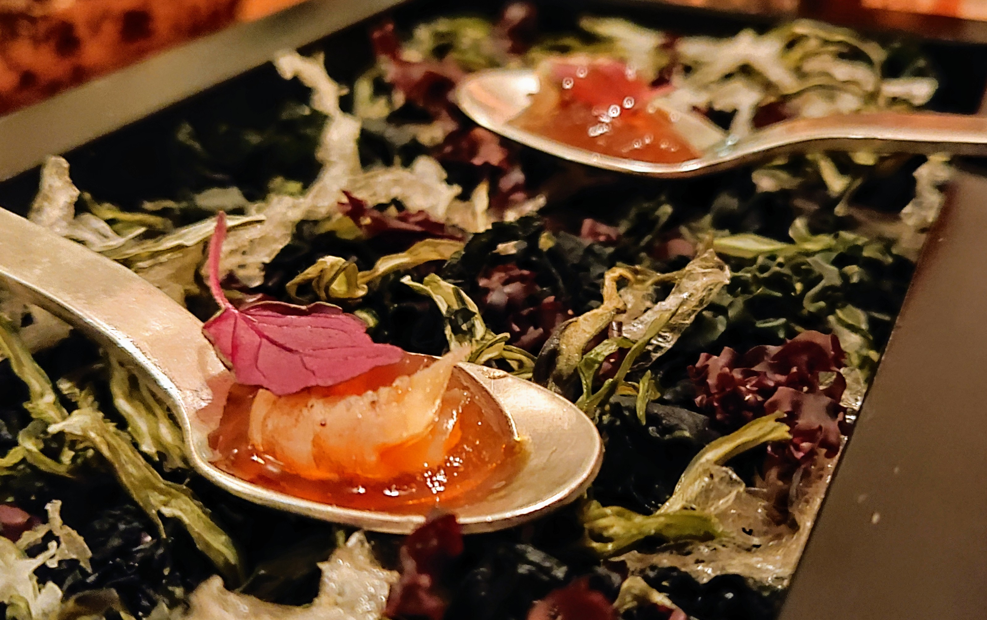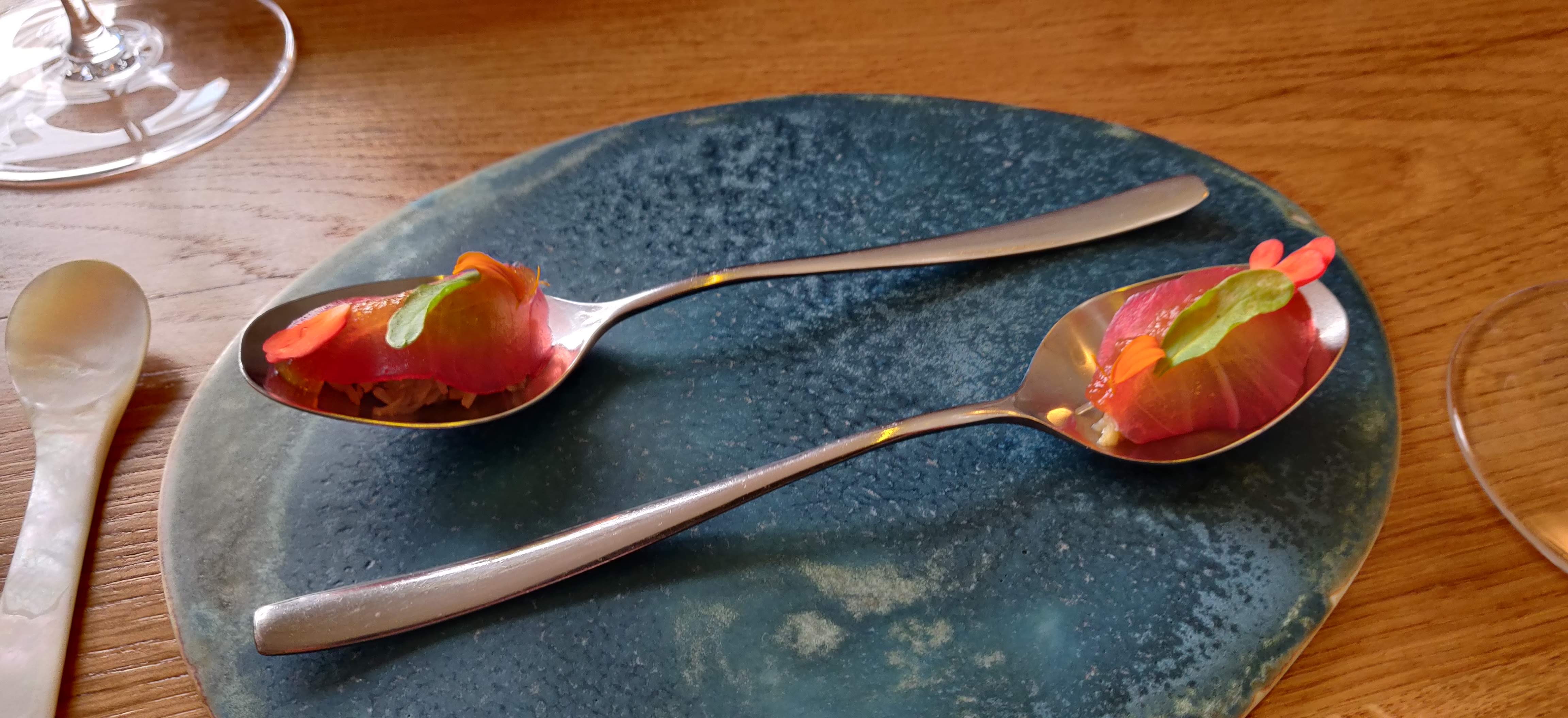 Un talent brut. Des associations de saveurs et de texture inédites. De la finesse et de la richesse pour un cocktail vraiment exceptionnel. Seul bémol, la dégustation est organisée en une série de nombreux petits plats et n'est pas toujours lisible.