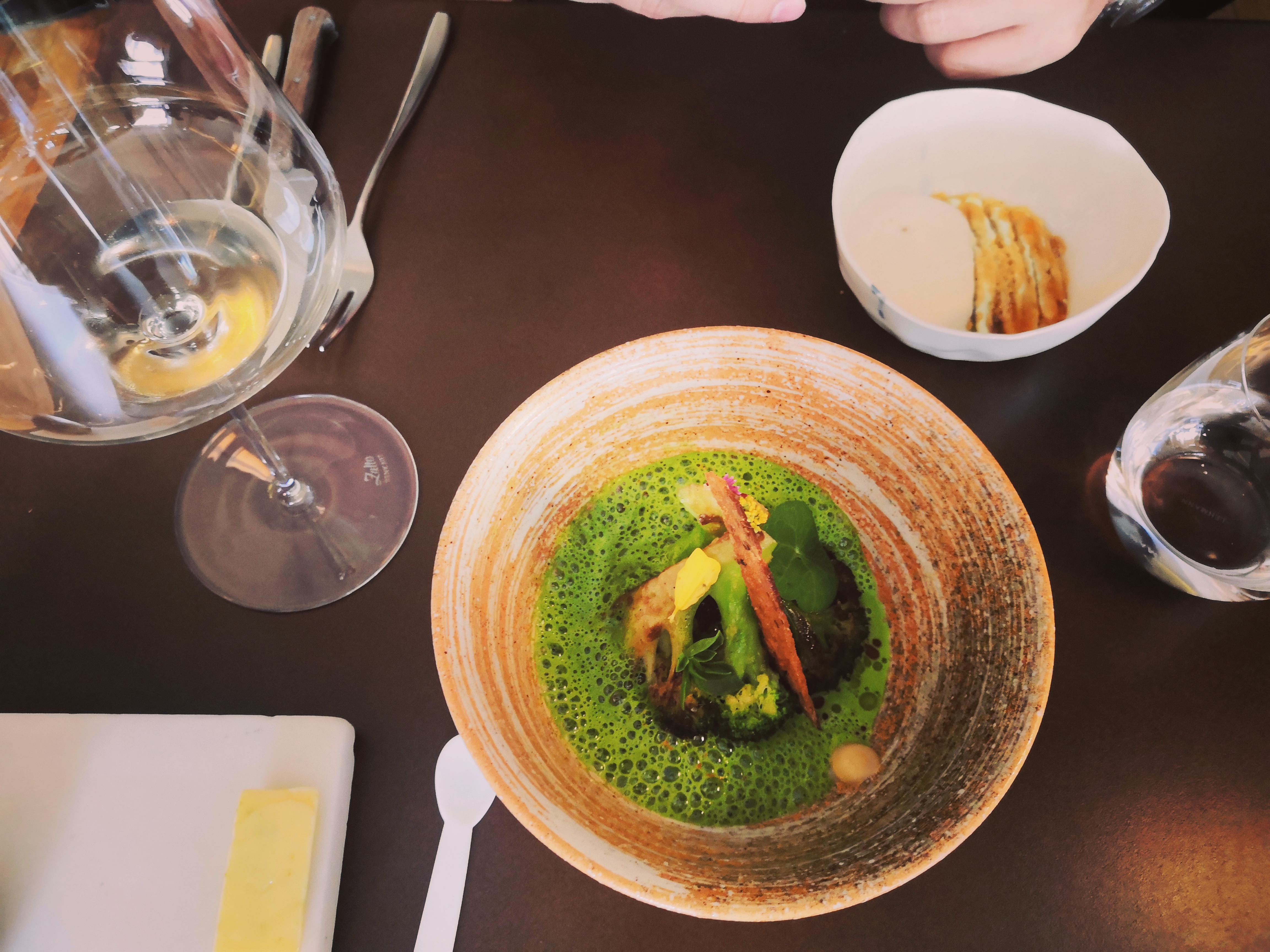 Cuisine aérienne et profonde. Les produits sont respectés, dans des accords réfléchis et osés, ça marche!!! Bravo. Carte des vins un peu classique malheureusement et service un peu froid. Malgré tout, le lieu vaut le détour.