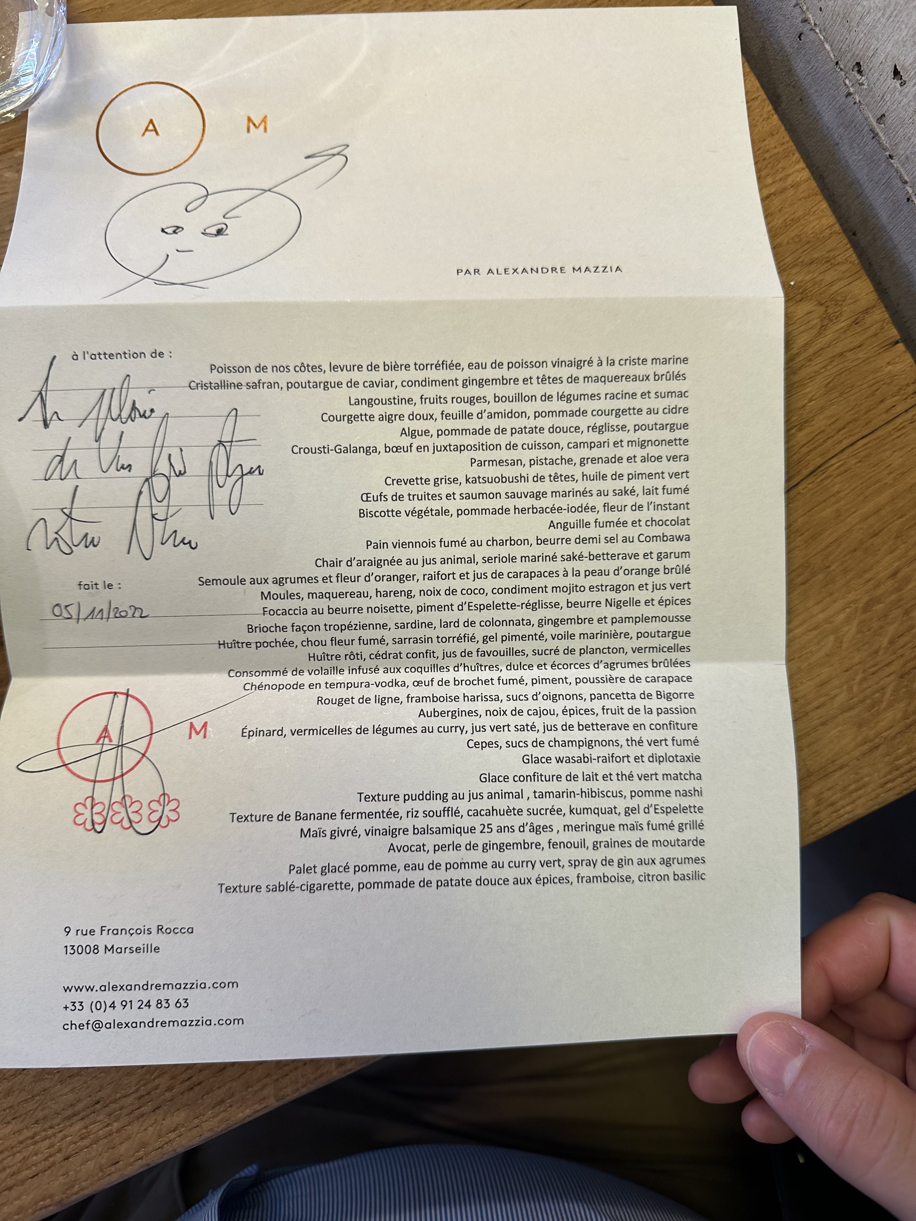 Quel voyage ! Sûrement le meilleur repas de ma vie. Alexandre Mazzia a su nous toucher autant par son talent que par sa simplicité.