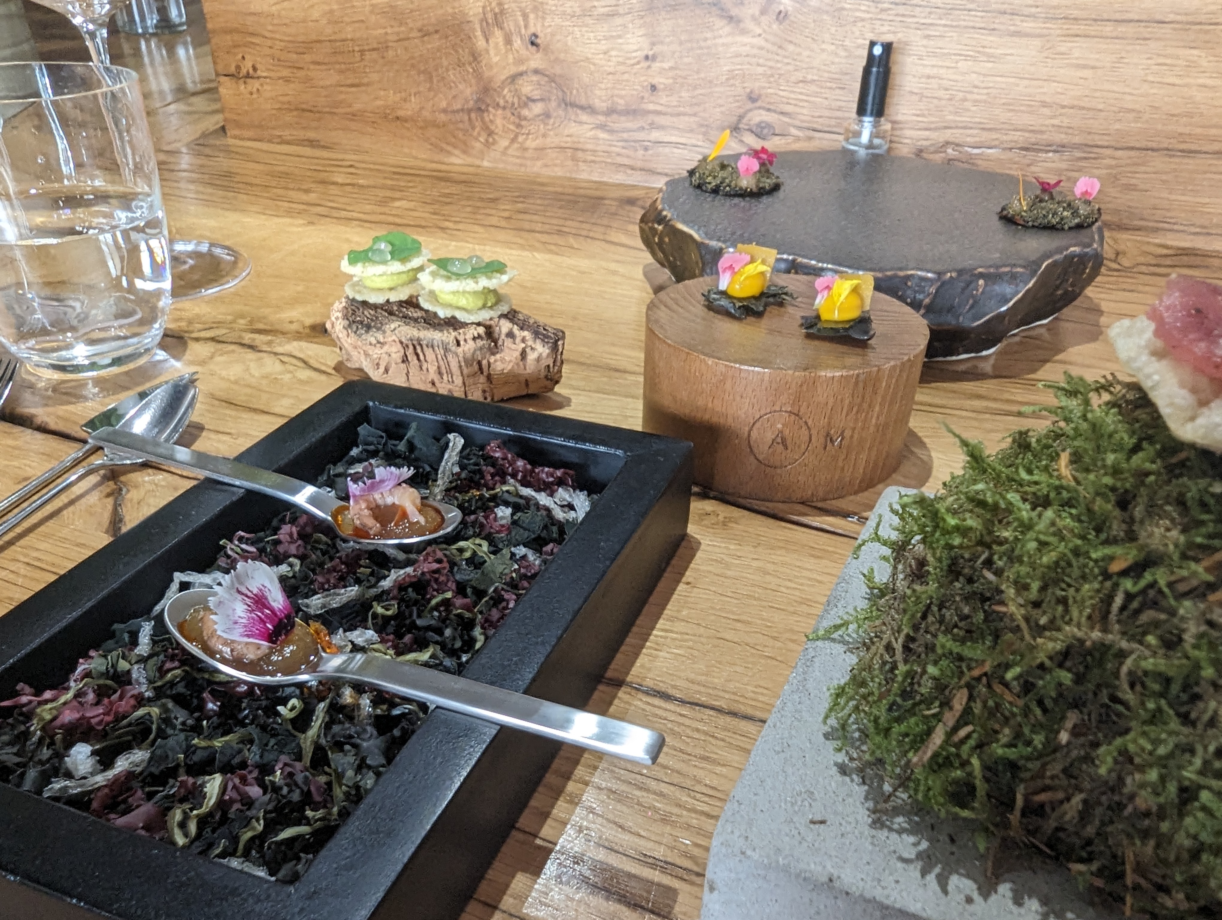 Très beau travail de présentation, repas très généreux avec de nombreux plats qui permet de découvrir de nombreuses saveurs Tendance très iodée et plusieurs plats à fort caractère
