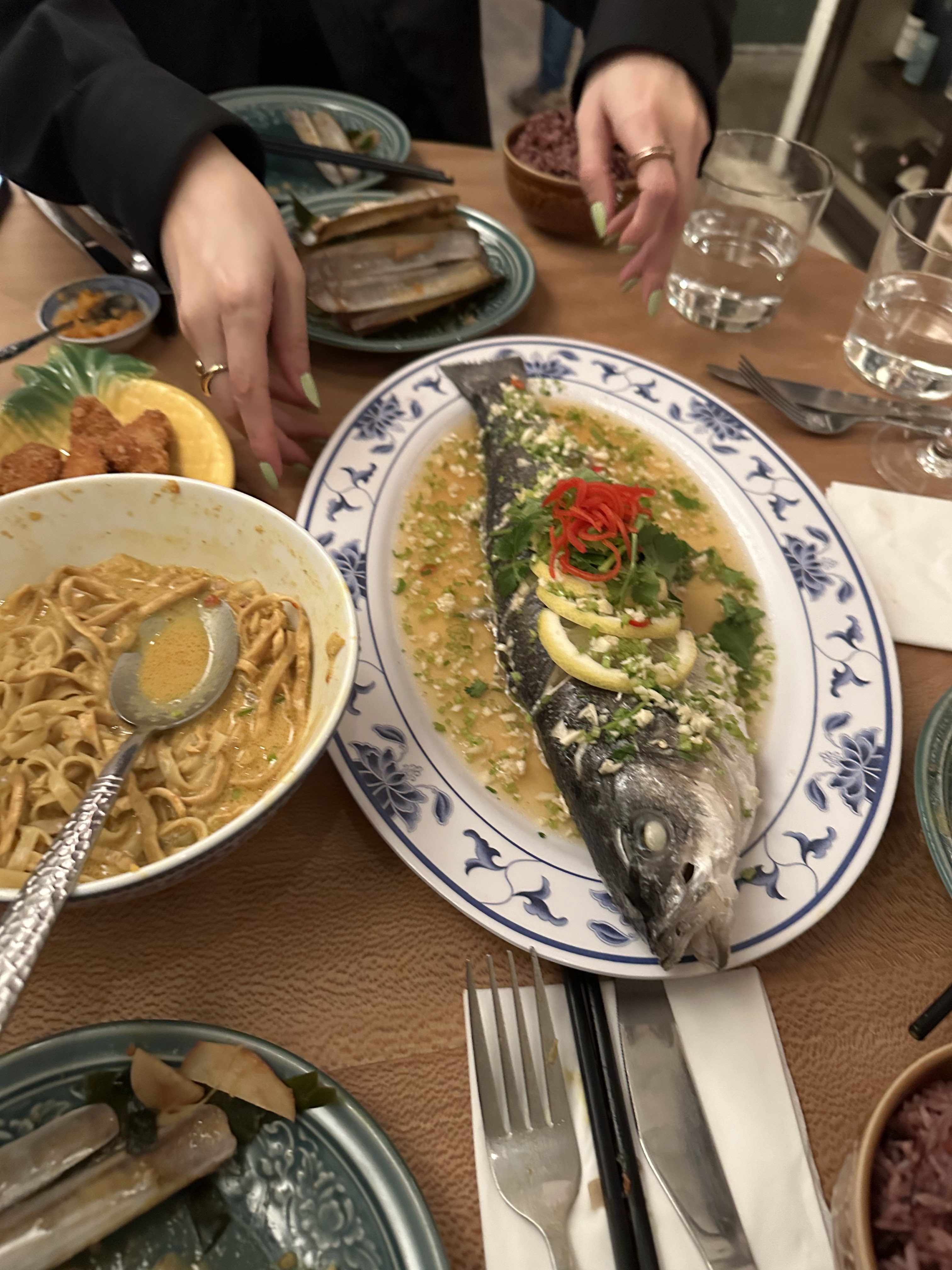 J'adore l'ambiance et la nourriture était bonne! Nous avons eu le bar cuit à la vapeur et les saveurs étaient définitivement là. Le vin était également délicieux.