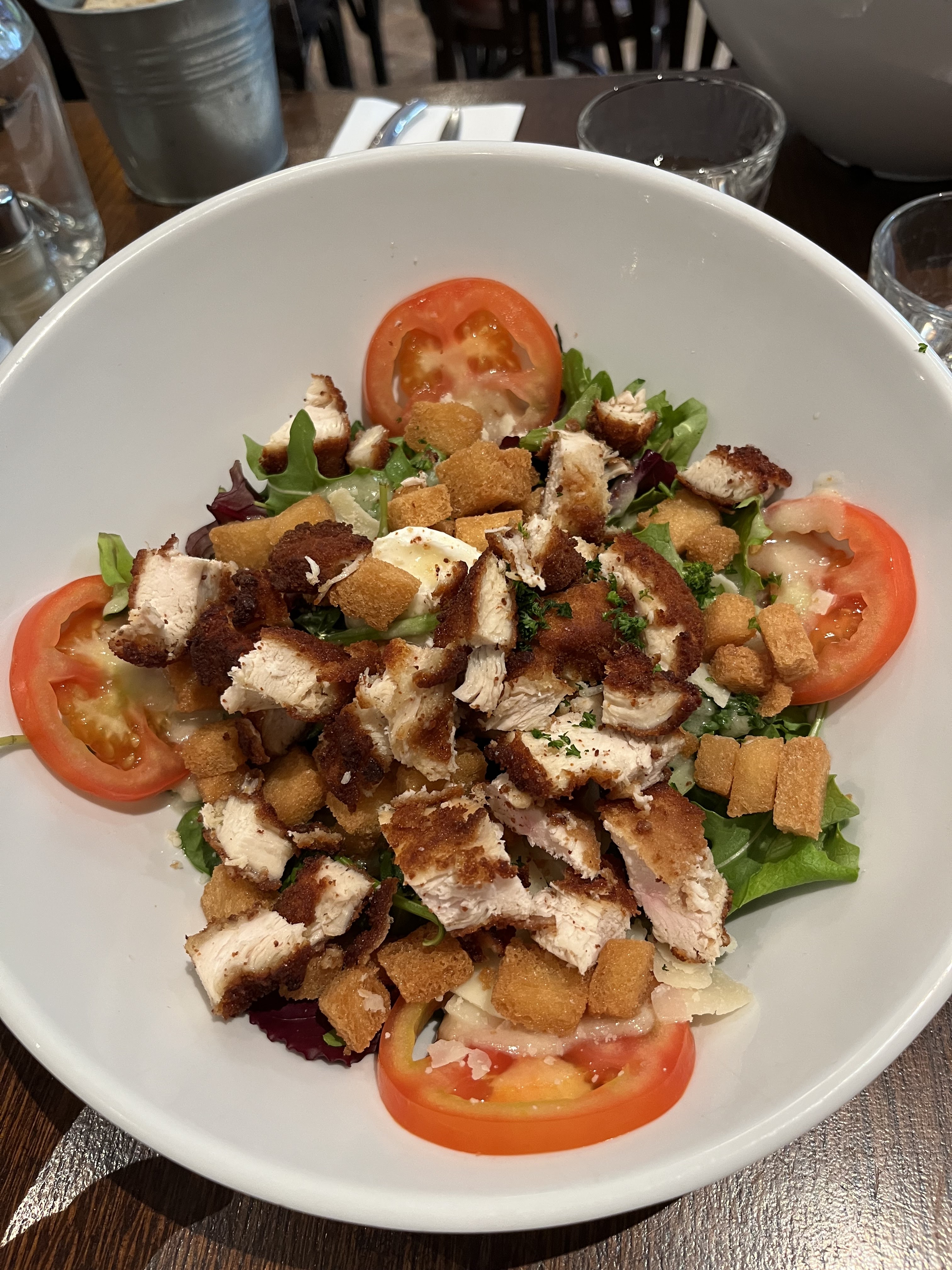 Lieu habituel. Nourriture normale, le service est un peu nul. Les couverts n'étaient pas entièrement propres.