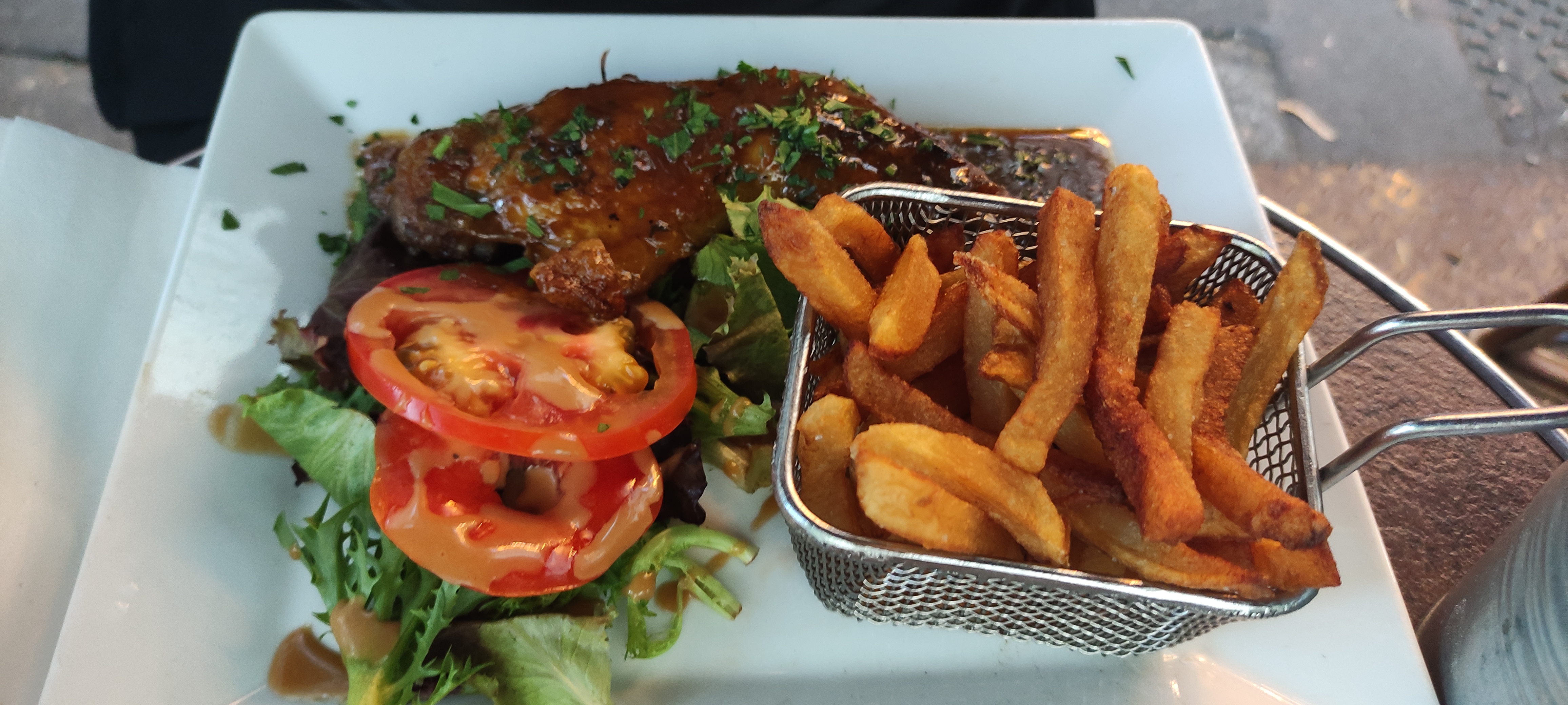 La nourriture est bonne, mais très grasse, l'huile coule trop sur les frites et sur les cuisses de grenouilles, les prix sont super !
