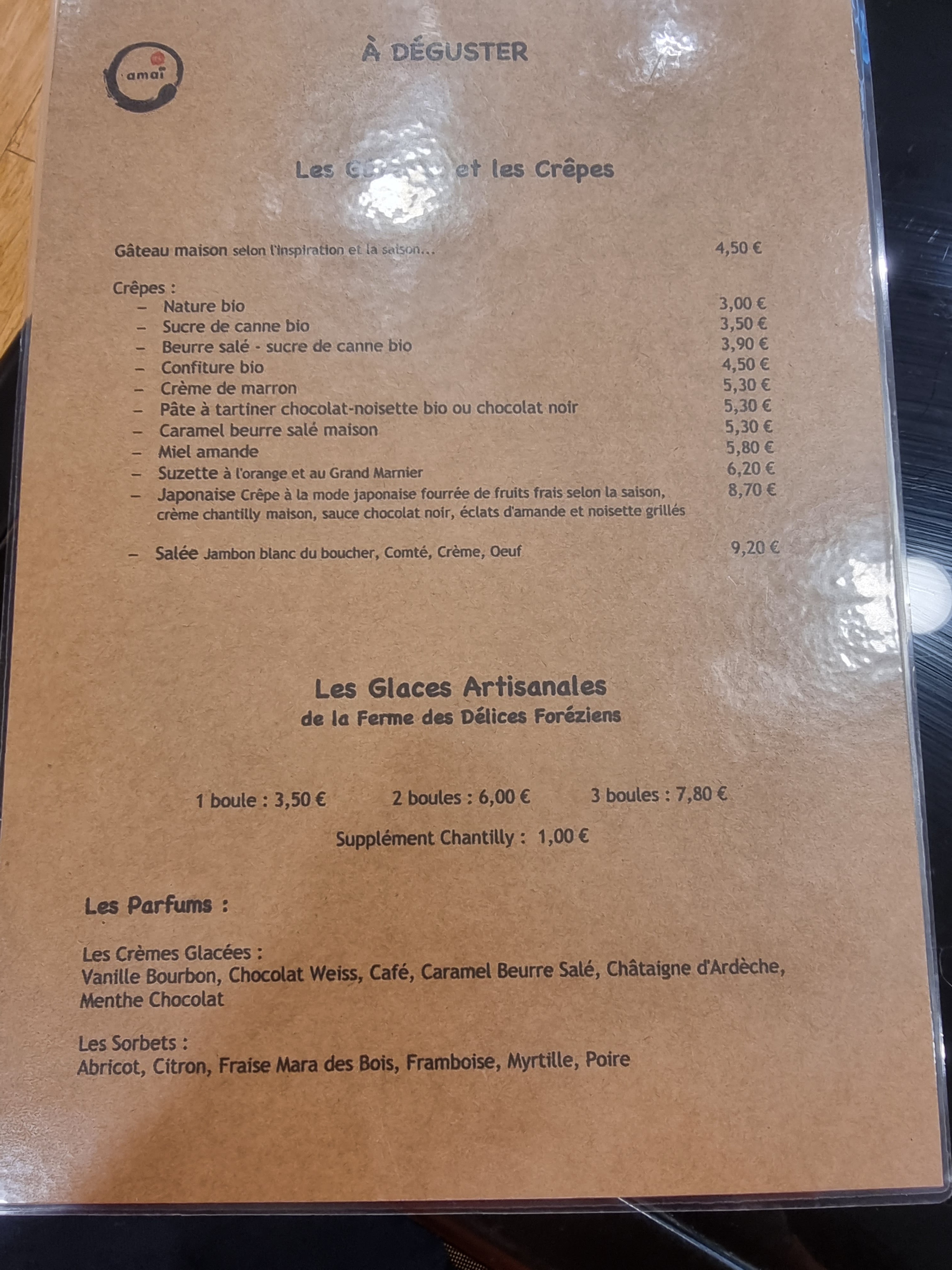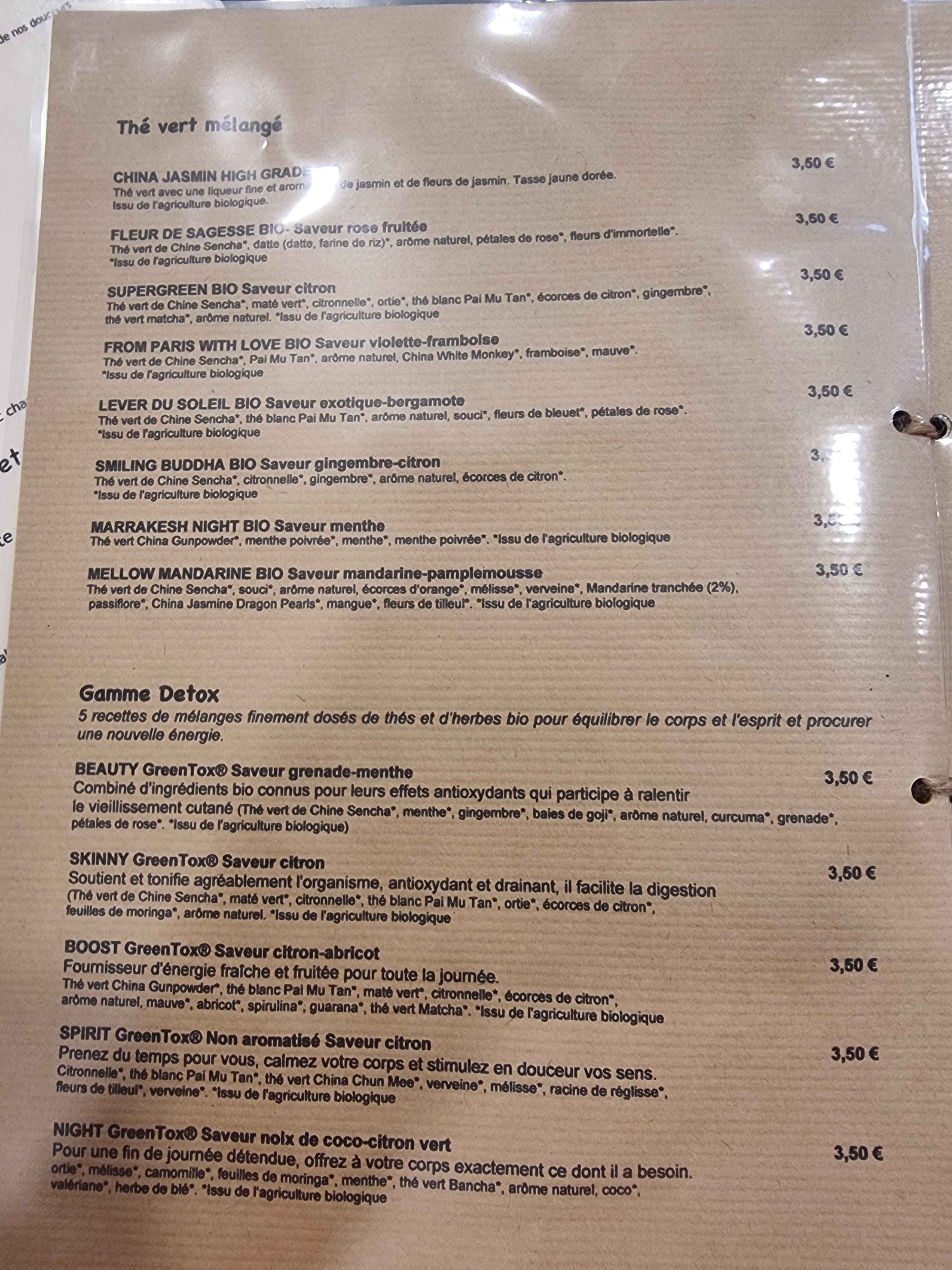 Lieux très agréable, patron très sympathique, thé et crêpe ou gâteau à emporter en ce moment.