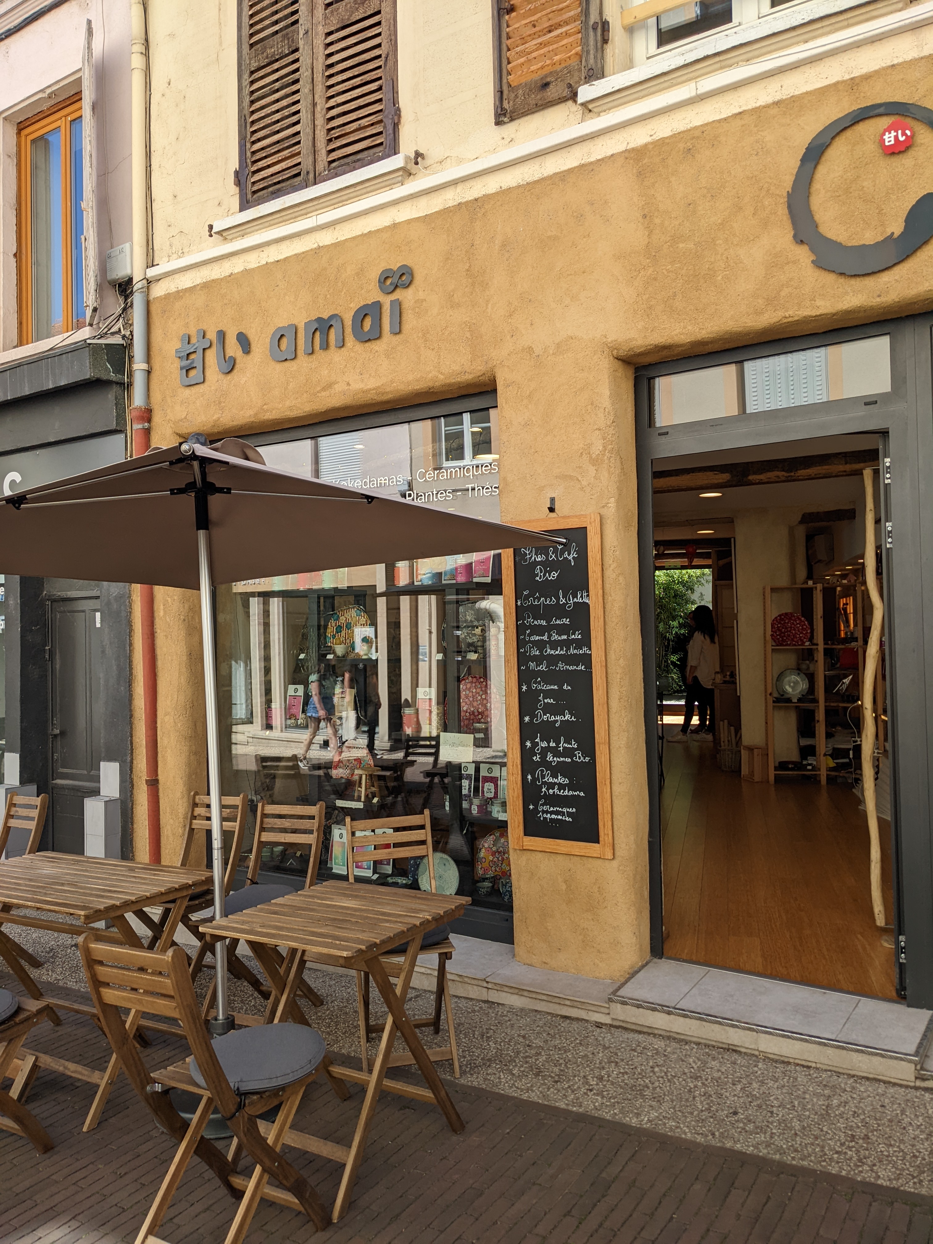 Quel doux moment passé au Amaï, en terrasse, une belle après-midi d'été indien, dans une rue piétonne quasi déserte. Un thé raffiné (super green), accompagné pour mon plus grand plaisir d'un gâteau maison sans gluten et sans lactose. Rare gourmandise pour moi, qui suis intolérante. Sans oublier l'accueil très agréable.