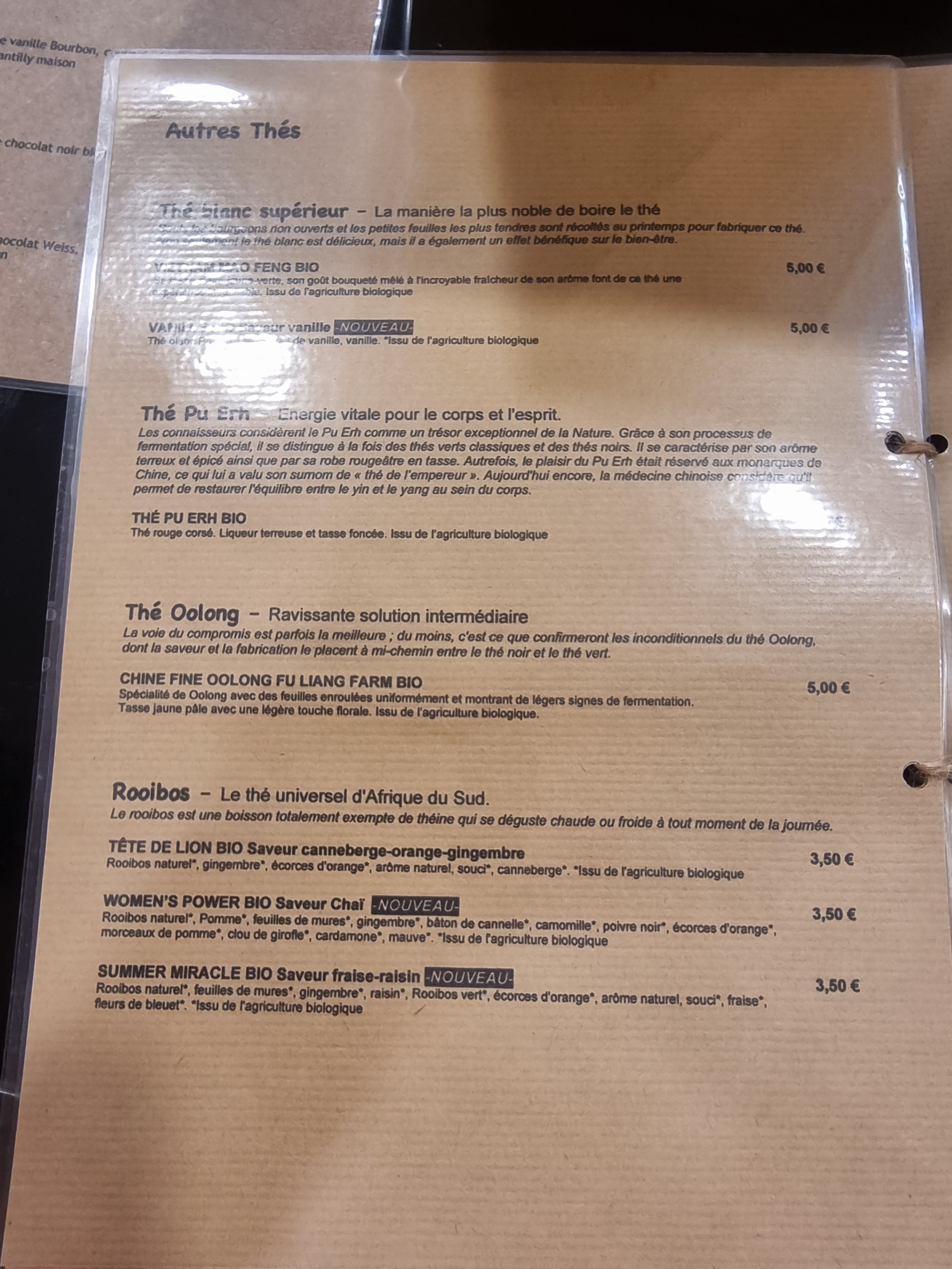 Choix important et de qualité de boissons chaudes ; accueil sincèrement souriant, aimable et courtois. Le lieu est agréable et reposant