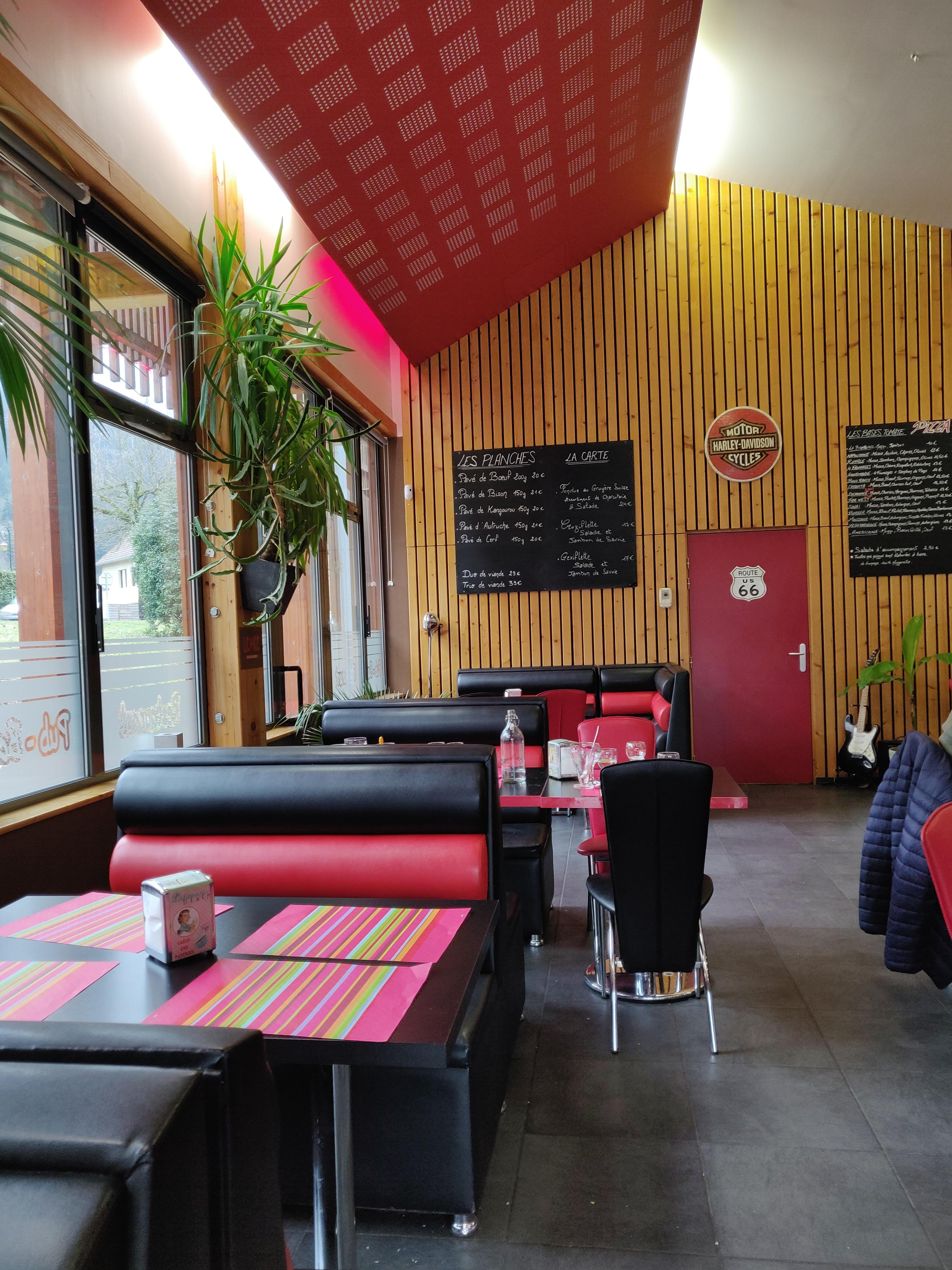 Je note la cuisine pour 4* car je me suis arrêté pour un café, mais sa sentait sacrément bon les assiettes des clients donné vraiment envie. Le patron est vraiment sympa. La décoration style route 66 très accueillant pour les parents comme pour les enfants. Arrétez vous pour un café et vous ne repartirait pas sans avoir mangé. Merci patron pour le café. Salutations à très bientôt.