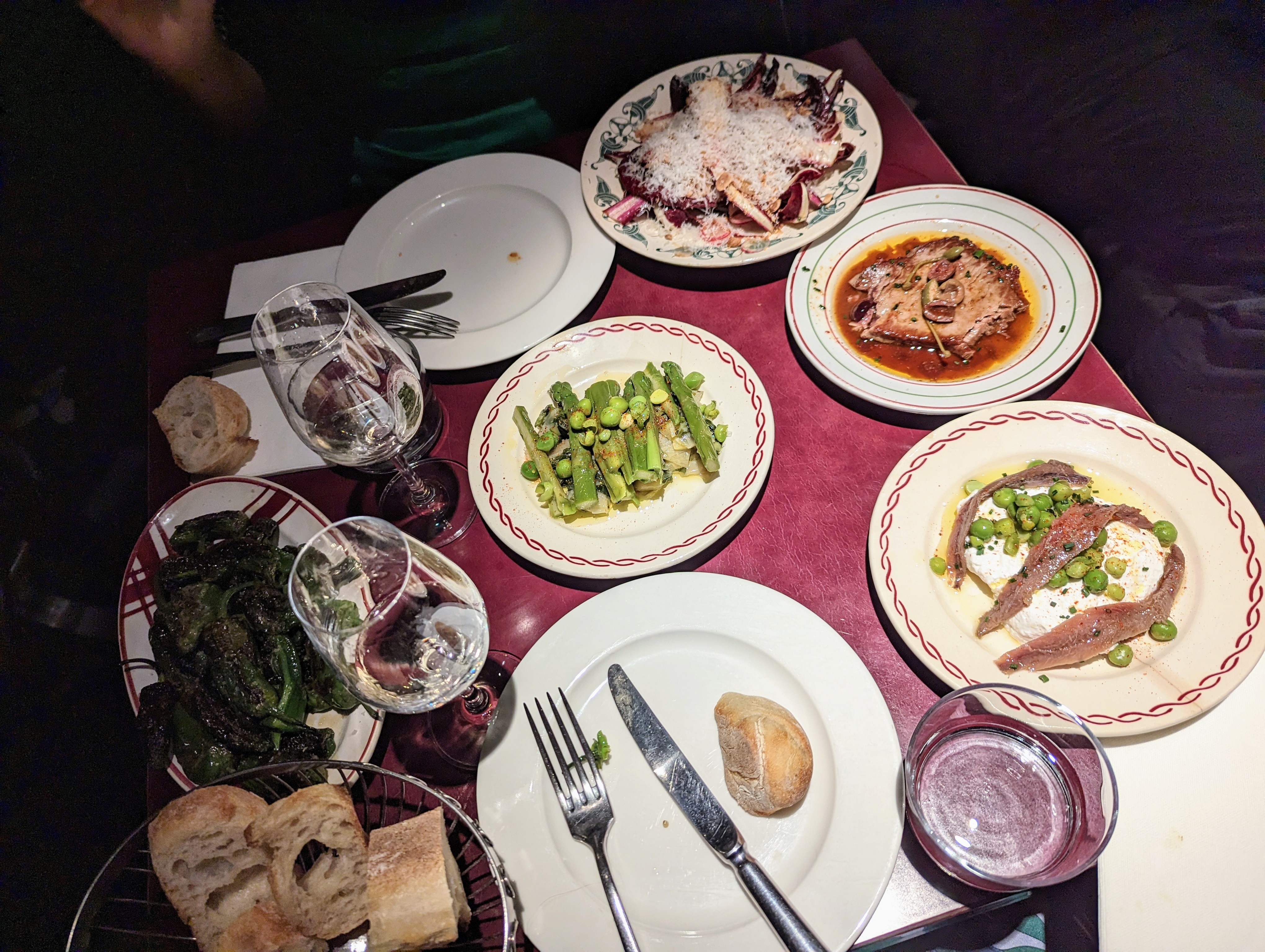 Le restaurant offre une belle carte d'assiettes basques à partager. Les plats sont bons, bien maîtrisés, et le choix est variés comme vous pouvez le voir sur les photos. La sélection de vin est intéressante, et le vin orange proposé est très bien. L'endroit et le service sont conviviaux.