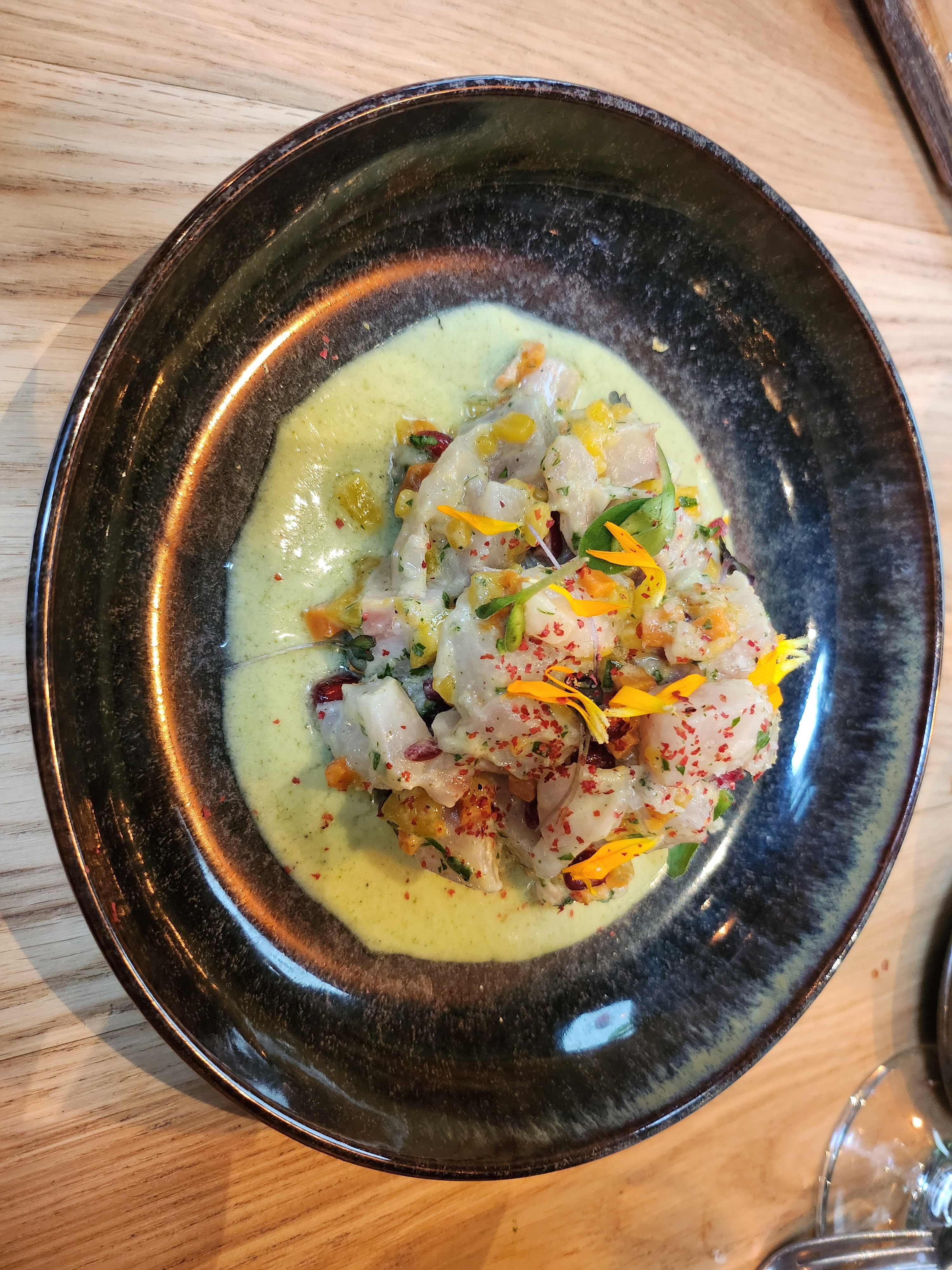Le lieu est très beau et conviviale, par contre dans l'assiette, c'est autre chose. Bien présenté mais la cuisson du suprême de poulet était trop cuite donc il était sec et l'accompagnement était léger. Ma compagne a pris un ceviche et déçu par un gout qui manquait d'assaisonnement. J'y suis allé une fois, je renouvellerai pas l'expérience.