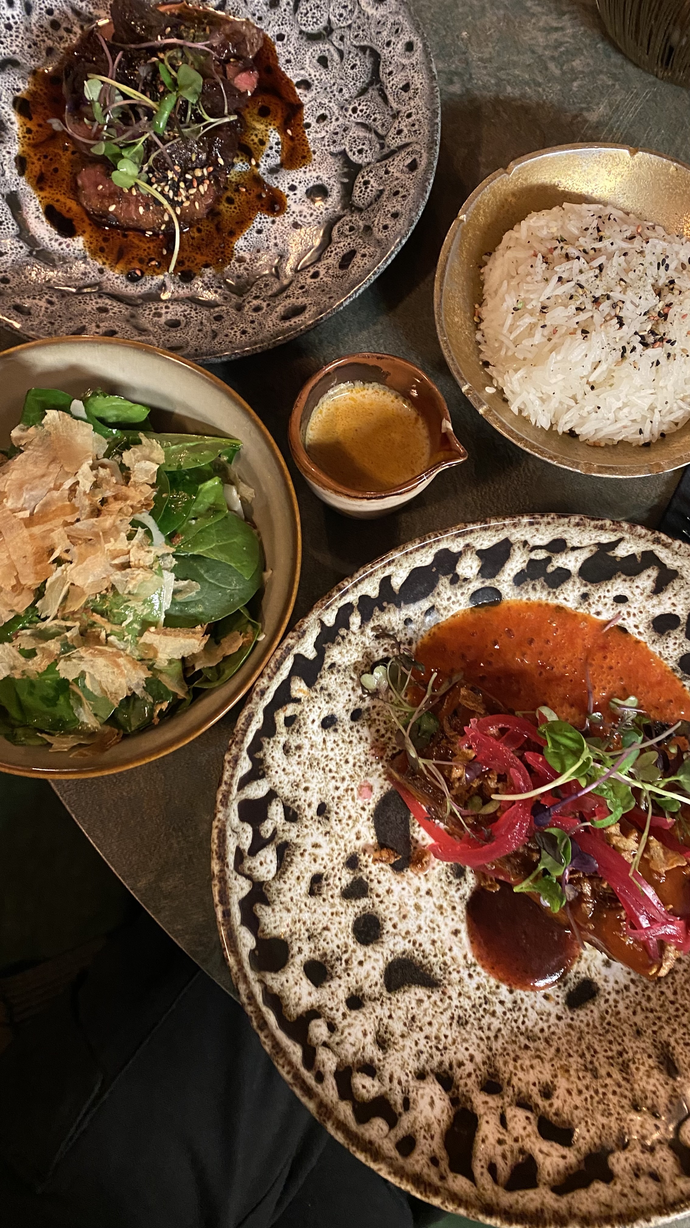Pour ma part un sans faute. Je conseille ce restaurant nourriture excellente, musique excellente, cocktail divin 🥵❤️, personnel agréable, décoration mignonne. Les prix sont élevés mais c’est de la qualité ✨ Réservez vous ne serez pas déçu. Voici quelques photos