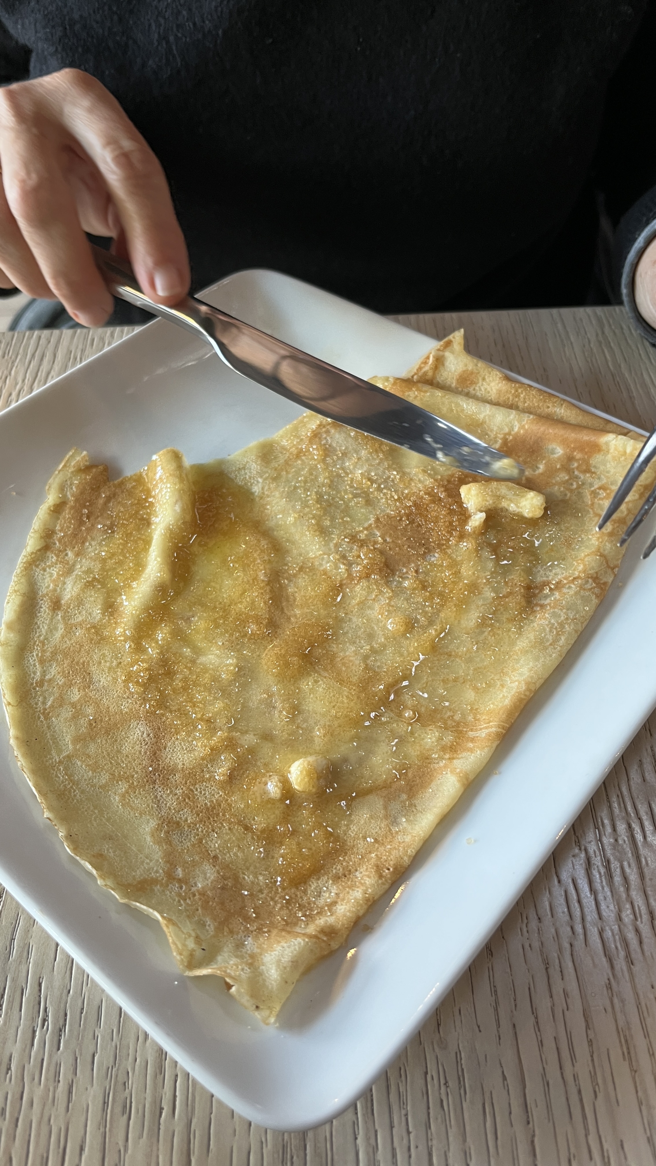 Décevant, galette et crepe trop sèche Galette avec garniture au dessus mais on s'attends à avoir la garniture à l'intérieur Crepe beurre sucre avec un morceau de beurre posé qui donne pas du tout envie. Les crêpes ne semblent pas être faite minute ni les galette d'ailleurs Une bonne crepe beurre sucre vous devez la faire avec du beurre fondu et du sucre pas avec du beurre trop difficile à étaler car il était solide Pas top c'est dommage mise à part le service qui etait très agréable je ne vois pas d'autre point positif.