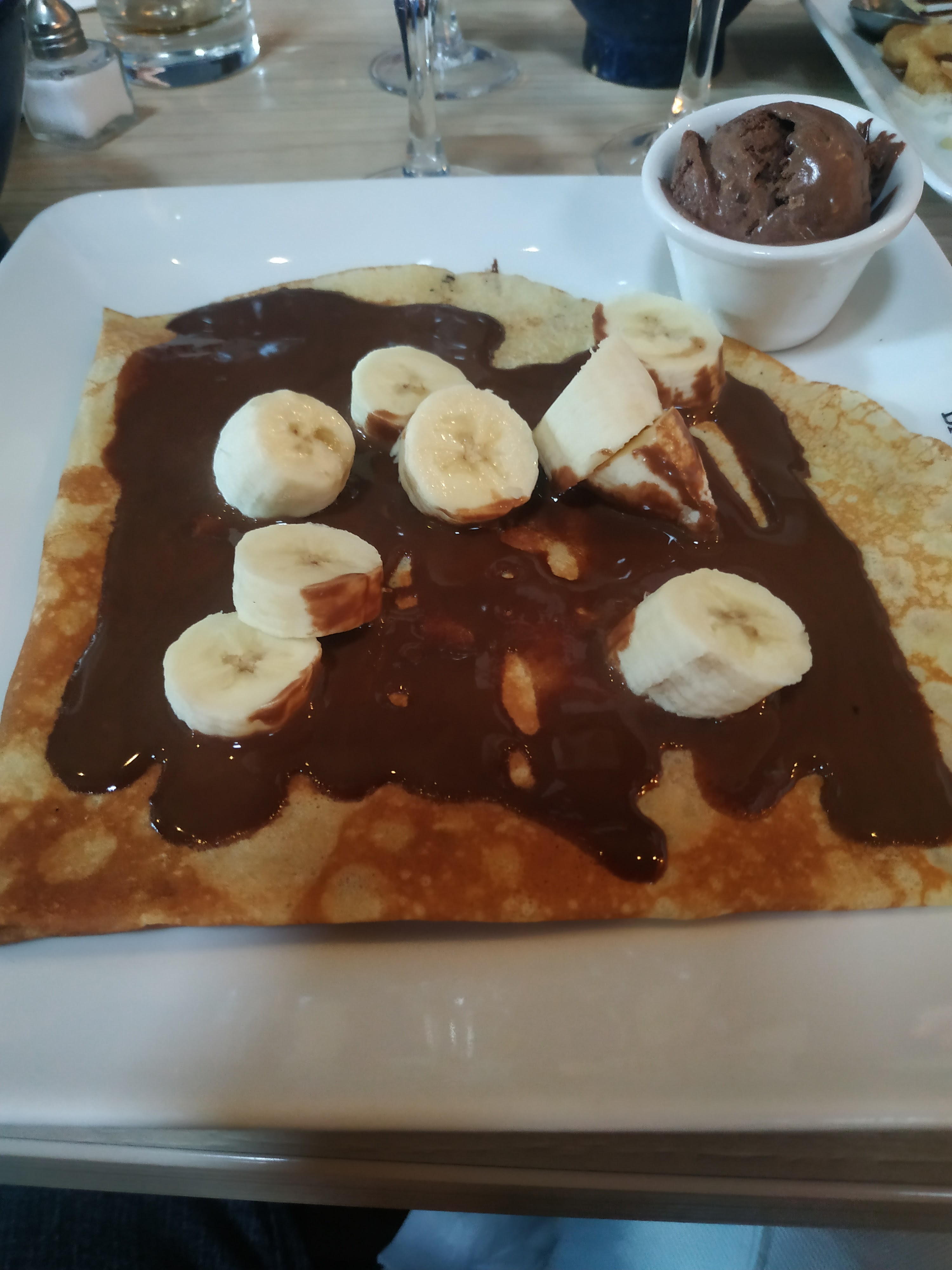La crêpe lardon chèvre ça passe, par contre la crêpe avec la bolognaise et les champignons... Vraiment pas top. La crêpe était sèche car aucun ingrédients dedans. Et la bolognaise posée comme ça sur la crêpe .. pas très esthétique. Le dessert était mieux, mais encore une fois aucun ingrédients dans la crêpe....