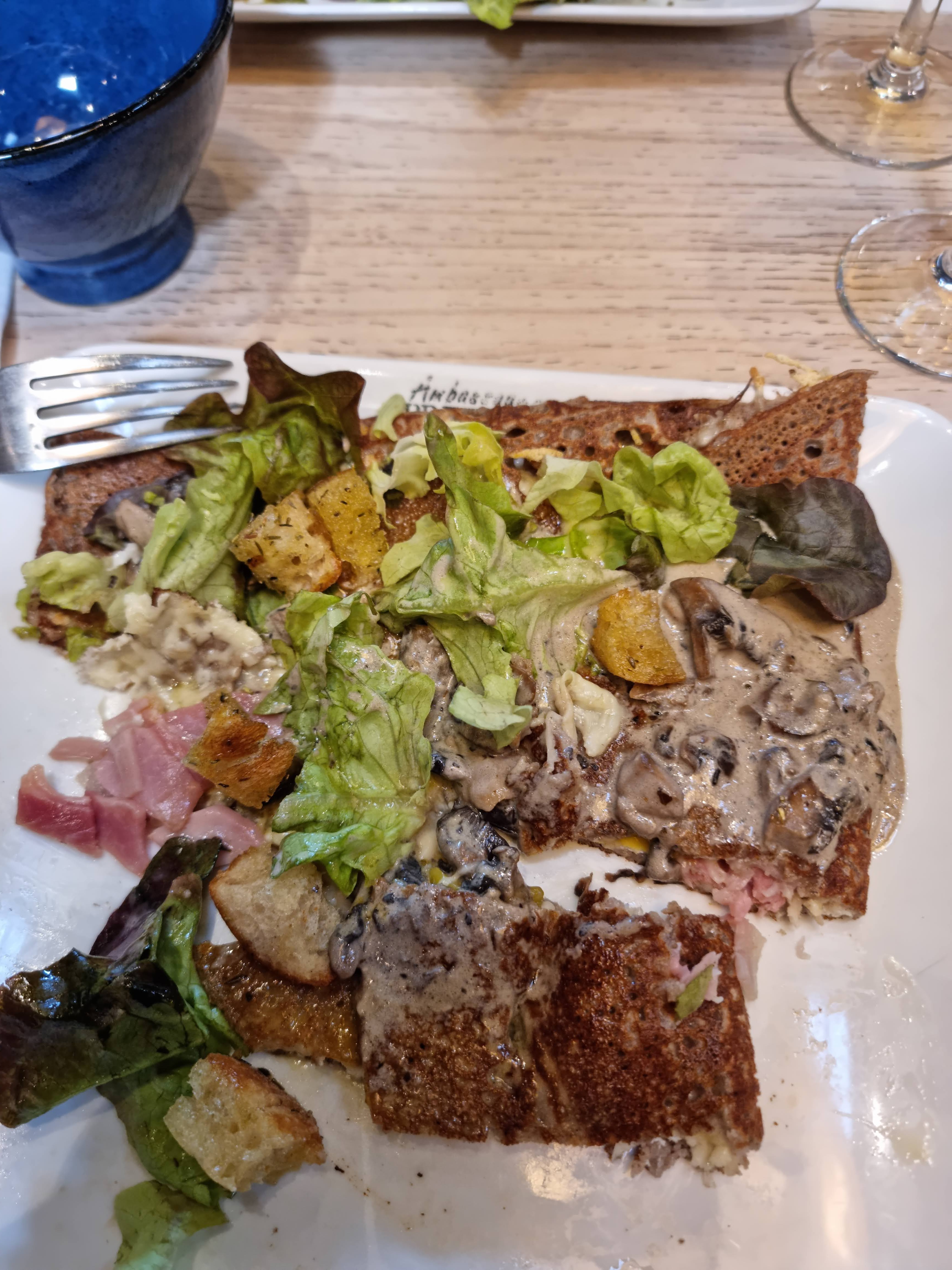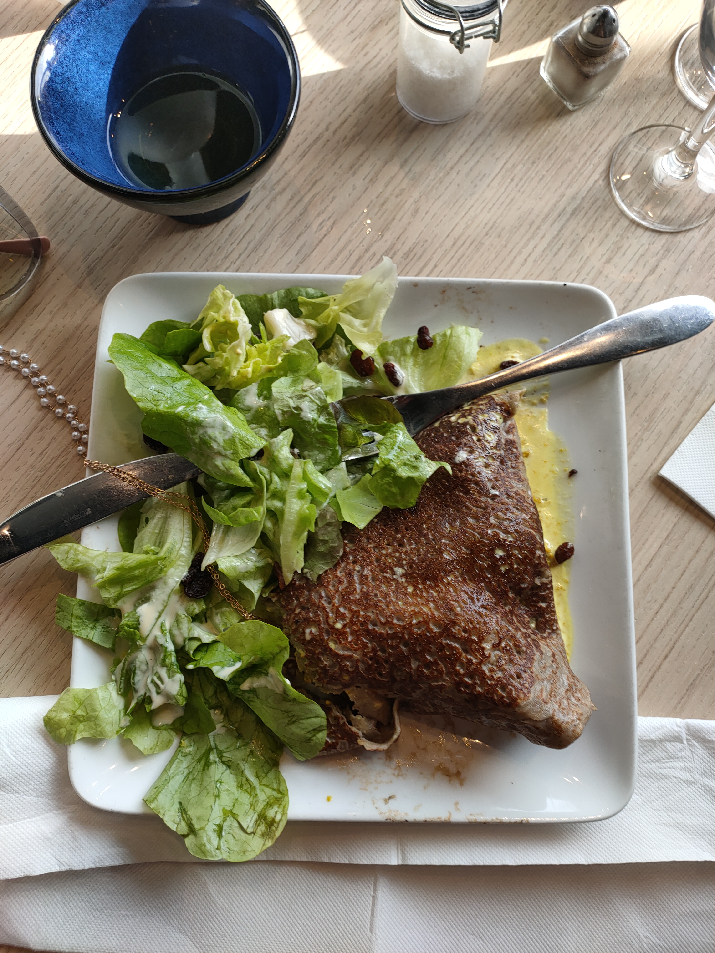 Un repas entre amis où nous nous sommes régalés : la salade comme les galettes étaient délicieuses, et le kouign amann une tuerie ! Et nous qui avions peur d'avoir faim, ce fut plutôt l'inverse... nous sommes repartis le ventre ultra plein. Nous reviendrons !