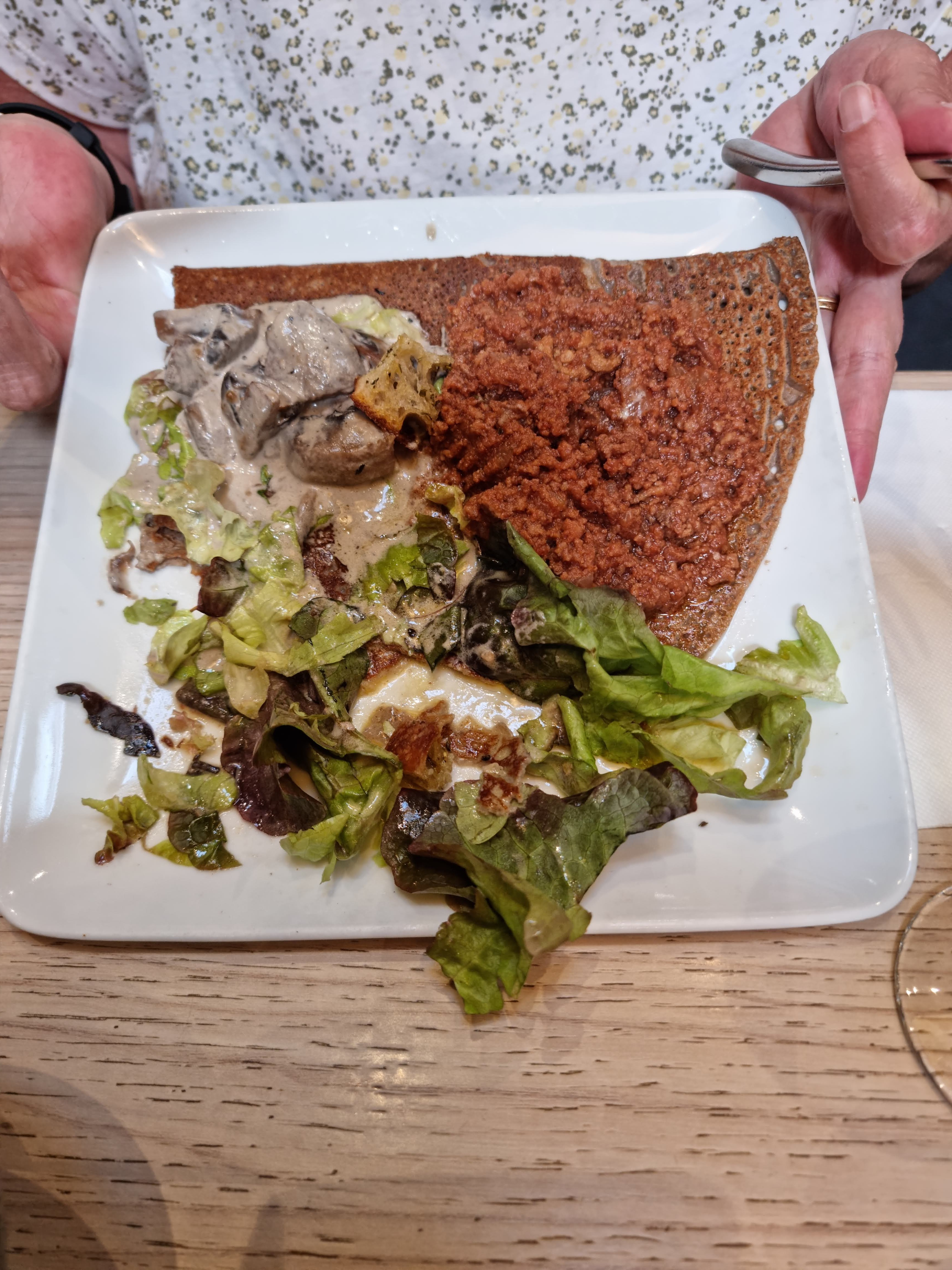 A nôtre table tout le monde c'est régalé. Pas Uniquement que des crêpes. Plats Savoureux avec de bon produits. Serveur a l'écoute et de bon conseils. Ambiance restaurant agréable