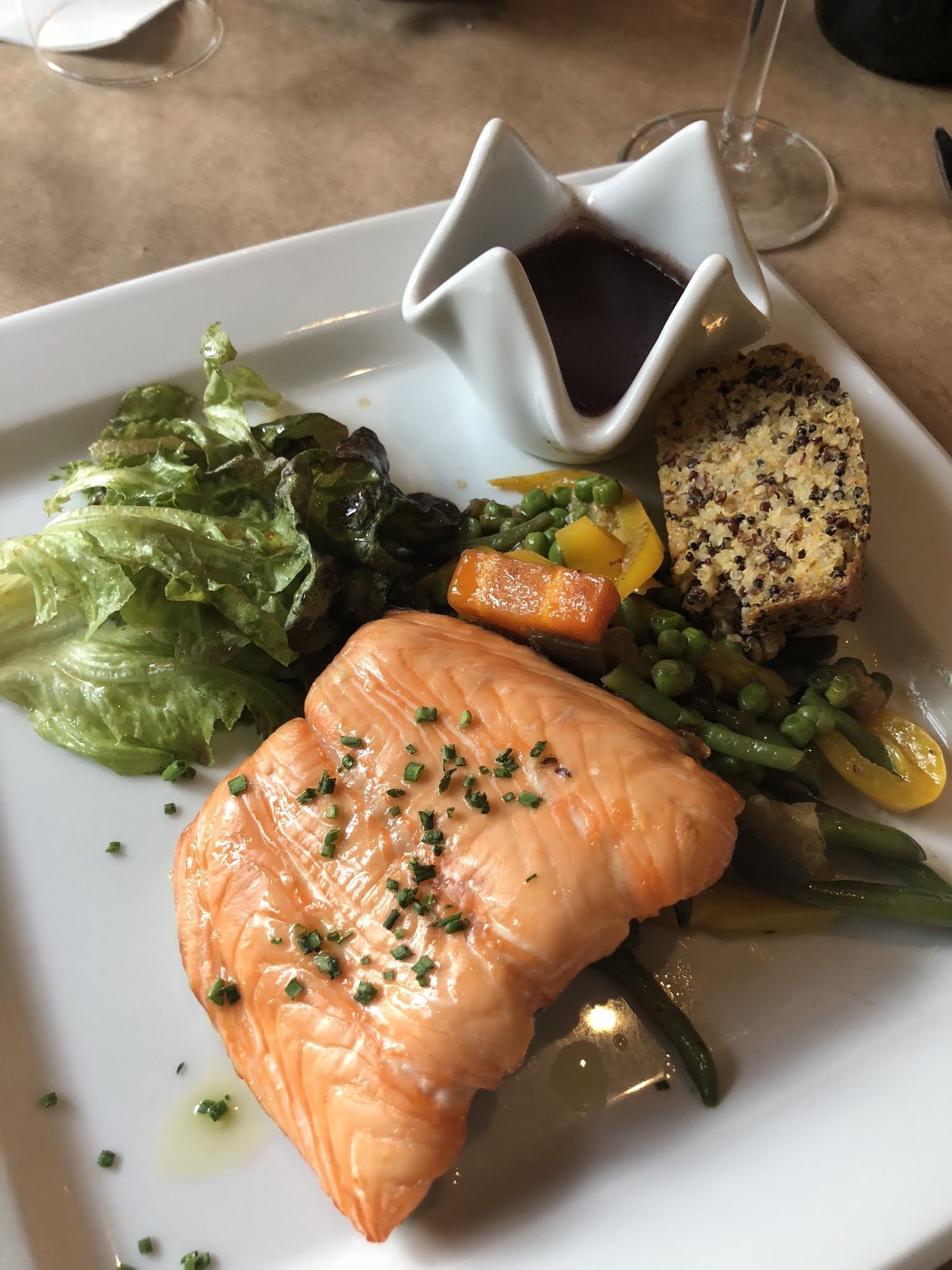 Personnel pas agréable pas souriant Passez votre chemin J ai pris un menu avec du saumon Le morceau de saumon était très petit J ai pris du vin de saint -Emilion. Le vin était décrit fruité acidulé et gourmand Hors il était très amer acide et pas du tout gourmand !! Impossible à boire Je l ai signalé à la serveuse qui m a répondu que c était la première fois qu on lui disait ça J ai demandé m addition et le verre de vin était compté Je vais régler ma note et je signale la même chose , à savoir que le vin était imbuvable. Il me répond que c est la première fois où bien que le vin était passé éventé Donc attention aux bouteilles ouvertes depuis longtemps. Il l a retiré de ma note.