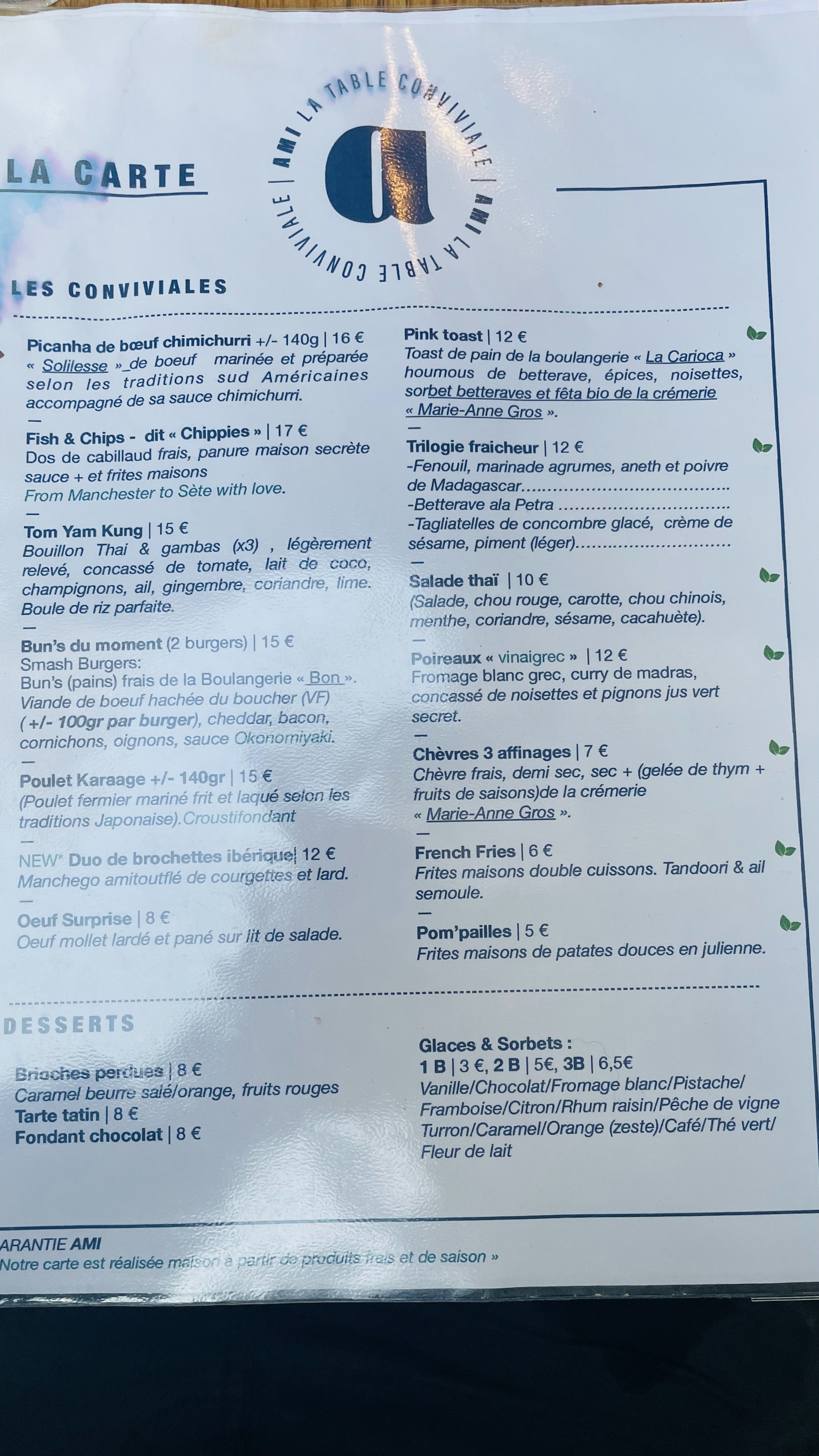 ami - la table conviviale :la bien nommée ! Accueil sympathique,cuisine creative,des desserts copieux et faits maison .Une compote de pomme revisitèe à tomber.