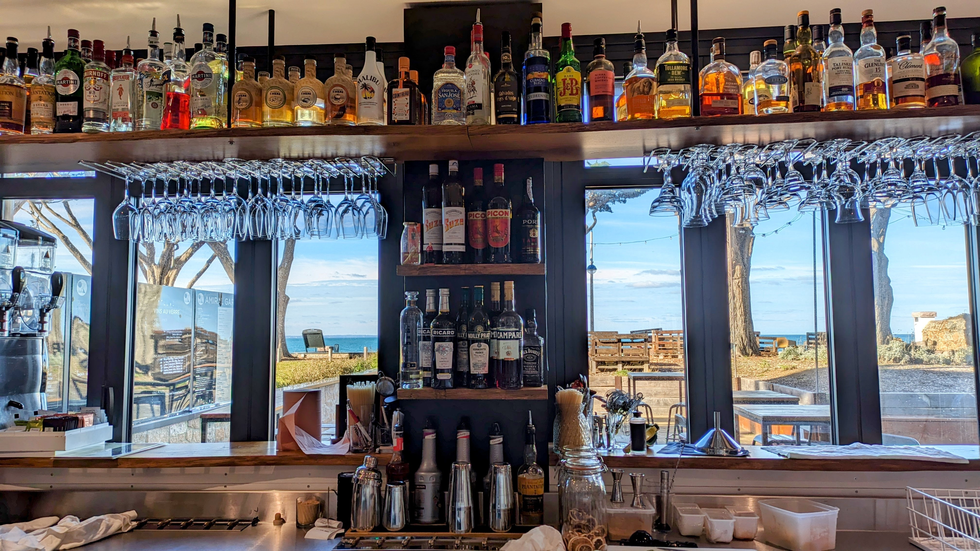 Vue sur la mer. Il faut prendre les commandes au bar. Endroit recherché dès que le soleil est au rendez-vous !
