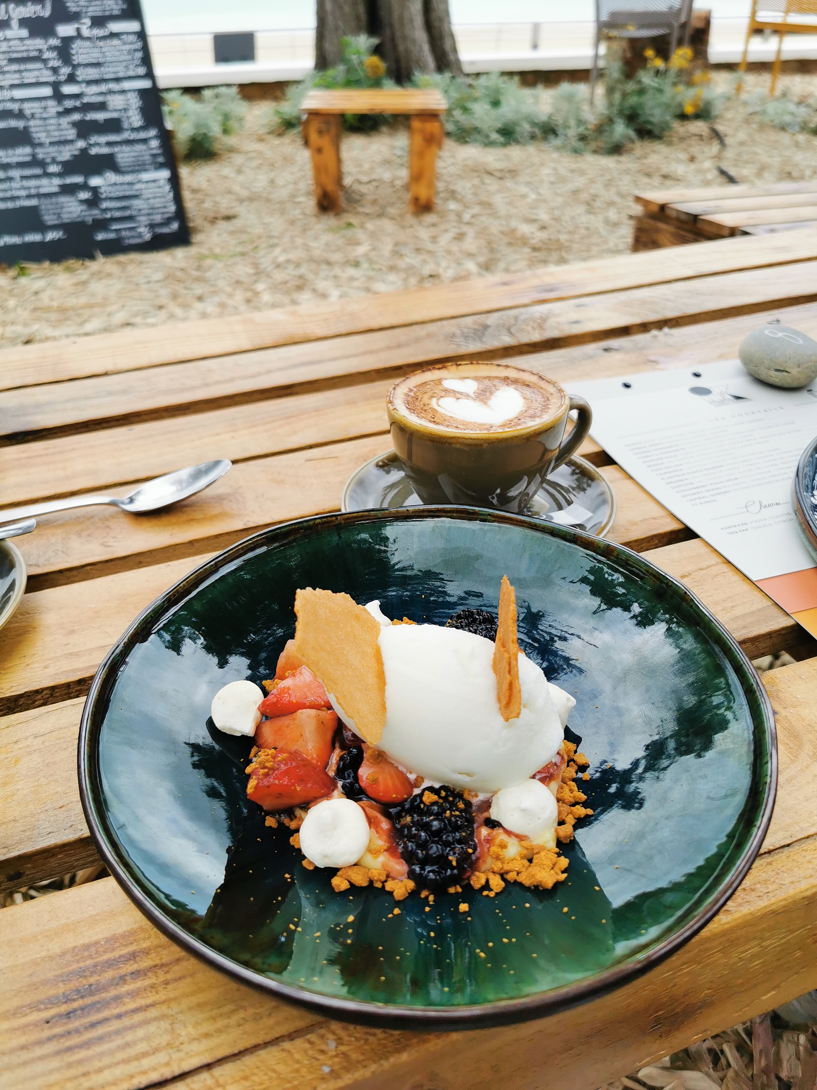 Un déjeuner relax et glamour à la fois dans une ambiance extérieure typée sud ouest qui contraste avec le granit breton environnant et le gris de la Manche qui fait face au restaurant. La table est à la hauteur de ce que l'endroit dégage, je retiens les huîtres en apéro arrosées d'un Bourgogne blanc somptueux tandis que la suite entrée et plat continue sur une note crescendo. Un instant, on oublie la fraîcheur de ce mois de juillet pluvieux et on se laisse à parler avec Sam, le patron passionné de sports mécaniques dont l'accueil courtois et direct met tout le monde à l'aise. Le café, préparé par un jeune barrista qui a fait ses classes à Melbourne la capitale du café-flooding clôture parfaitement ce déjeuner de début de vacances. Ha oui, gardez une place pour les desserts !