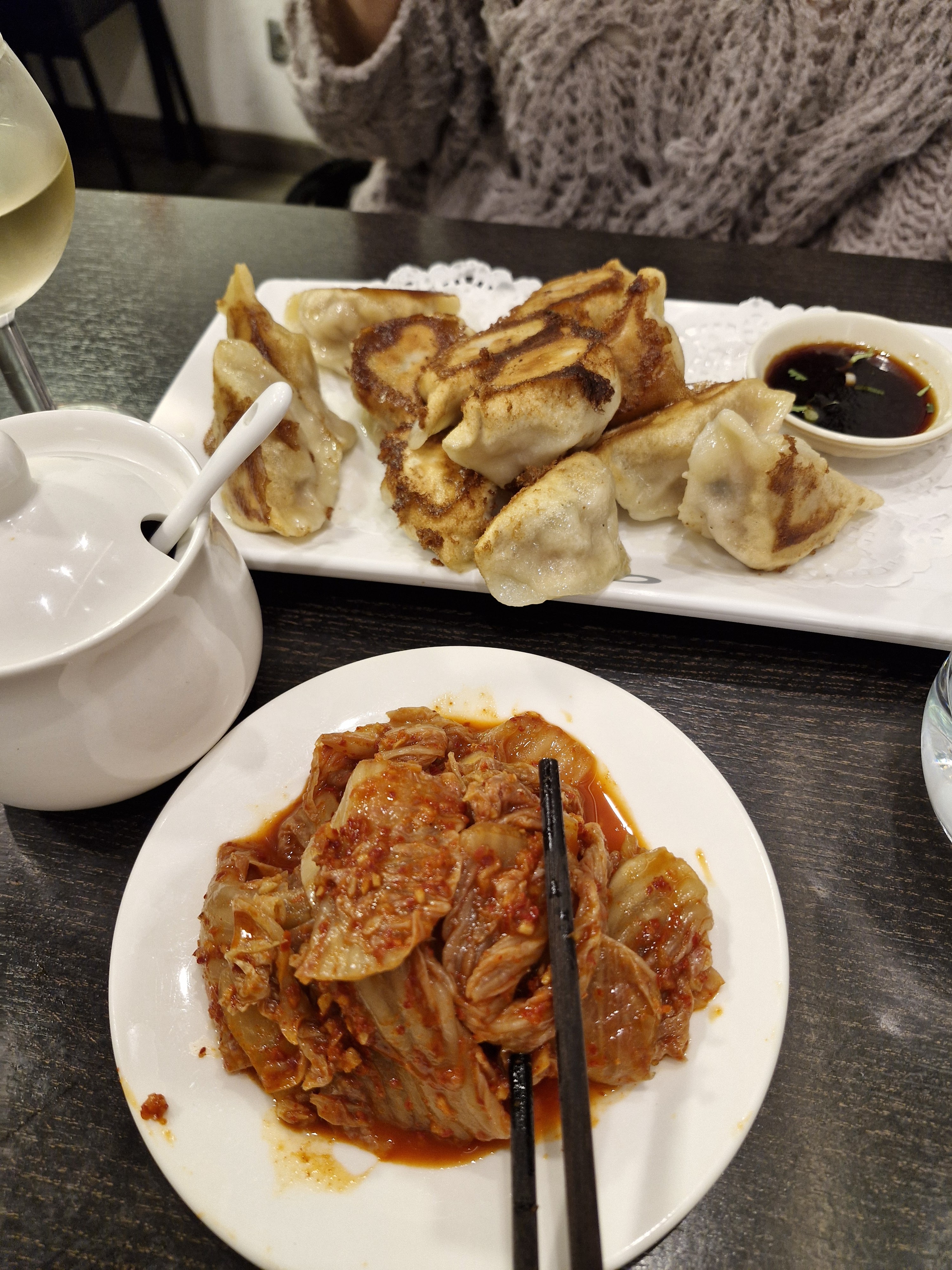 Fantastique. De délicieux raviolis. Kimchi excellent. Ma femme a trouvé le bœuf Schezwan un peu épicé (elle l'a adoré), je ne l'ai pas trouvé du tout spacy (j'ai adoré aussi). J'ai moi-même mangé près d'une douzaine de raviolis végétariens. Les prix sont plus que justes. Je veux vraiment voir cet endroit bien fonctionner.