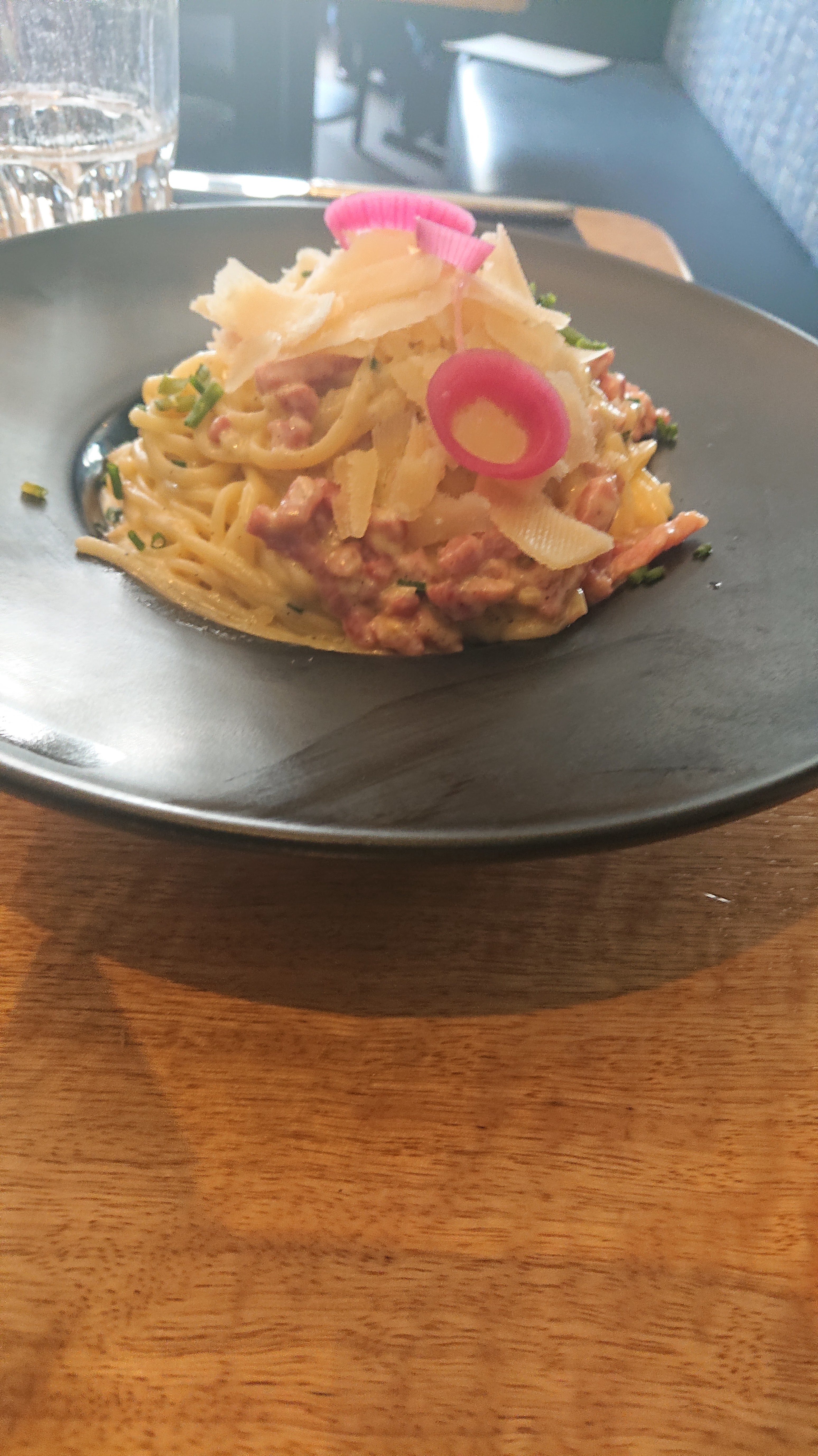 Cadre et personnel très sympathique Cependant, plats très chers pour ce que c’est. Nous avons tous pris des pâtes, comptez environ 20€ le plat. Pour les carbonara : aucun assaisonnement, portion minuscule, et guanciale carbonisé Pour les linguine aux St Jacques : servies dans un plat rectangulaire, concrètement pas du tout pratique, pas d’assaisonnement, les pâtes baignent dans le beurre… Pour les canneloni, le dessus était limite cramé, et pour le coup trop salées ! En regardant la carte on se dit qu’il y a peu de choix et que la qualité est privilégiée, mais finalement c’est très décevant. 45 minutes d’attente pour des pâtes pas assaisonnées à 20€, je pense qu’il faudrait revoir certaines choses… :(