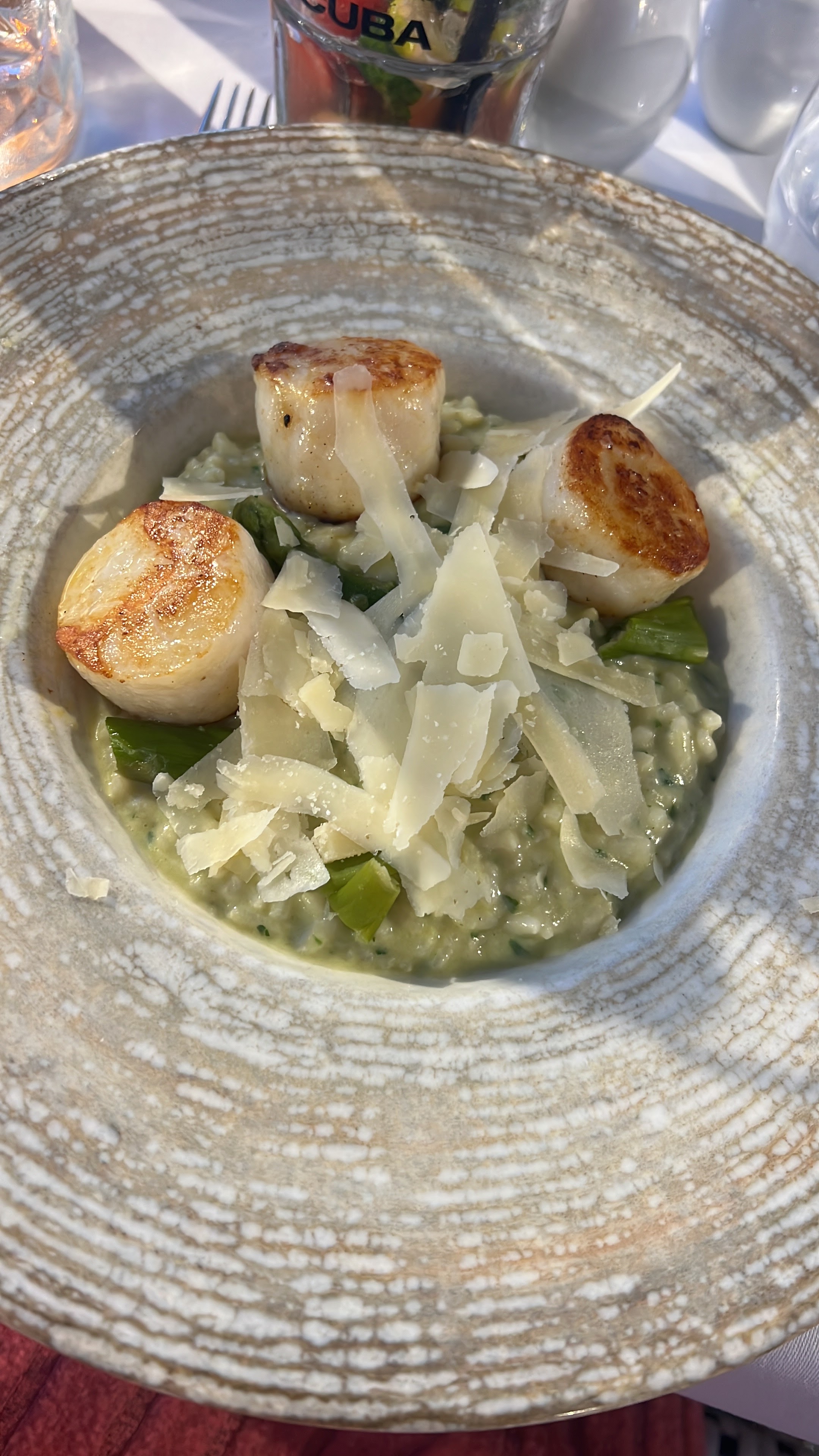 J'ai pris un risotto st jacques très déçu , 3 st jacques sur l'assiette a 32 euros ça fait Cher et le plat était vraiment fade sans intérêt... Le dessert était bon L'endroit très jolie