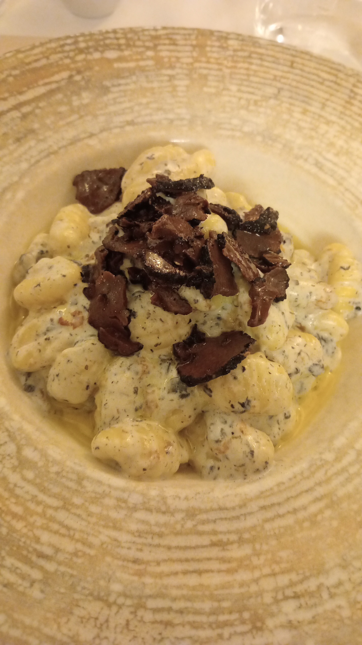 Un très bel endroit pour un bon repas en couple, en famille, ou bien même encore entre amis. Nous étions 16 pour ce repas. Au niveau du service pour les boissons c’était assez long. Puis pour le repas ils nous ont servis les pizzas avant les autres plats ce qui était assez dommage car nous avons du mange un peu en décalé. Au niveau des plats c’était bien évidemment très très bon. Vous pouvez le voir sur les photos. Je recommande fortement les gnocchis à la truffes, la pizza avec du jambon à la truffe également. En ce qui concerne les desserts ils sont tous plus généreux les un que les autres et très très bon. Pour ma part j’ai pris le tiramisu Nutella. Au niveau de l’ambiance il y avait de bonnes musiques. Le décors est assez idyllique et vraiment très appréciable. Au niveau rapport qualité prix nous sommes dans des prix légèrement plus haut que dans certains restaurants mais cela reste correct. Avec un plat un verre de vin et le dessert j’ai payé 44€. Je vous recommande cet endroit