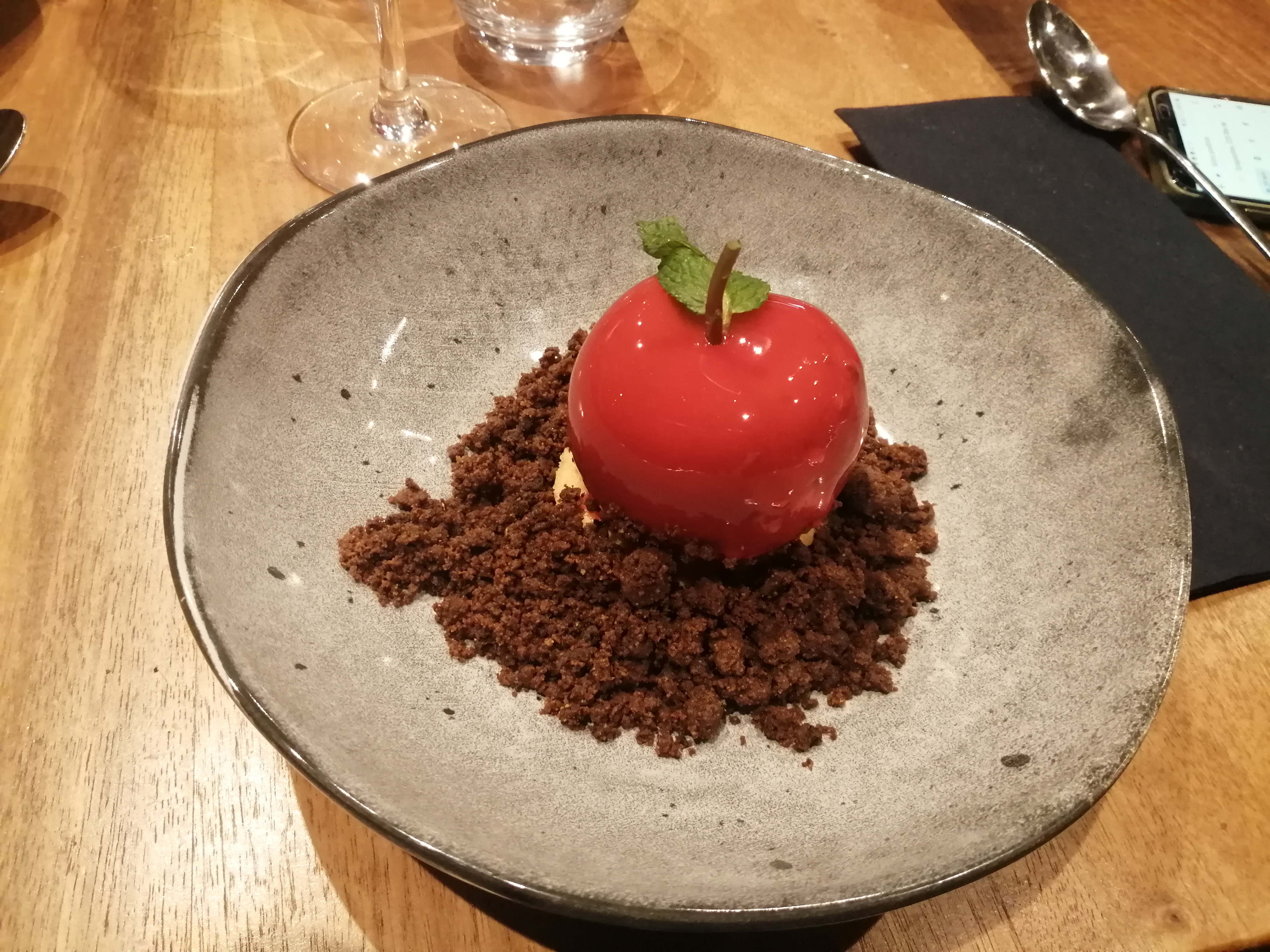 Le cadre est agréable la deco très sympa le personnel sympathique... Mais les plats sont fade... le tartare de boeuf manquait d'assaisonnement...avec un peu de sel supplémentaire c'était parfait la presentation est magnifique mais ne fait pas tout Le dessert signature en forme de pomme.perso pas à mon gout le crumble autour .pour moi n'apporte rien .. Le tiramisu très fade ... Dommage Dommage