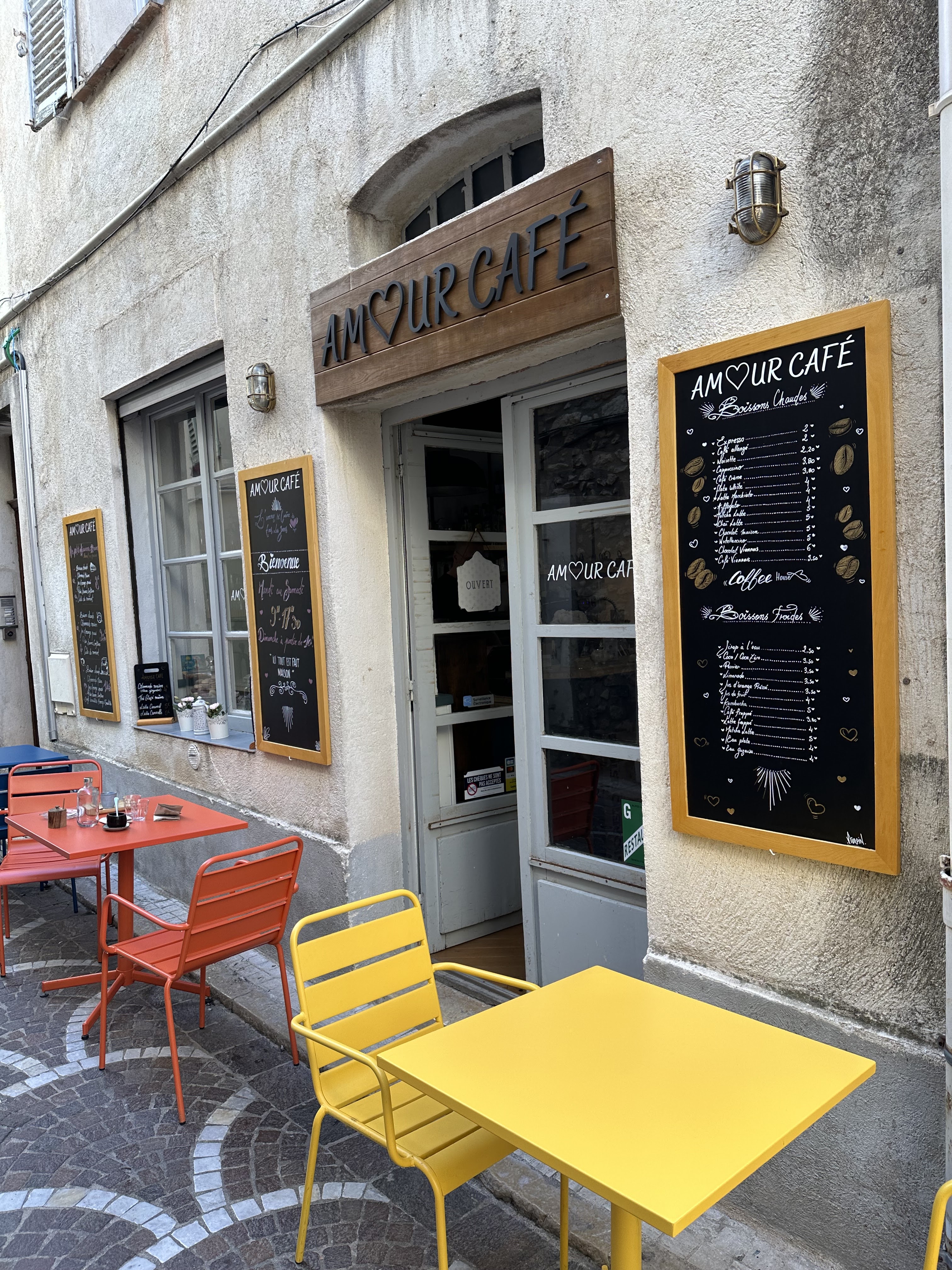 Un endroit incroyable découvert aujourd’hui en famille. Avant d’y arriver on a la chance d’emprunter des petites rues piétonnes où se rencontrent des jolies maisons de ville, des boutiques aux vitrines joliment décorées… et tout à coup l’AMOUR CAFÉ 💖 est là … il vous attend pour vous offrir un moment authentique… là où le temps reprend son vrai rythme, où les aliments retrouvent leur vrai goût. Si vous voulez continuer à courir et déguster vos plats rapidement cet endroit n’est pas conseillé. Par contre si vous voulez vivre un moment authentique avec des hôtes accueillants et attentionnés vous serez au Bon autrement.