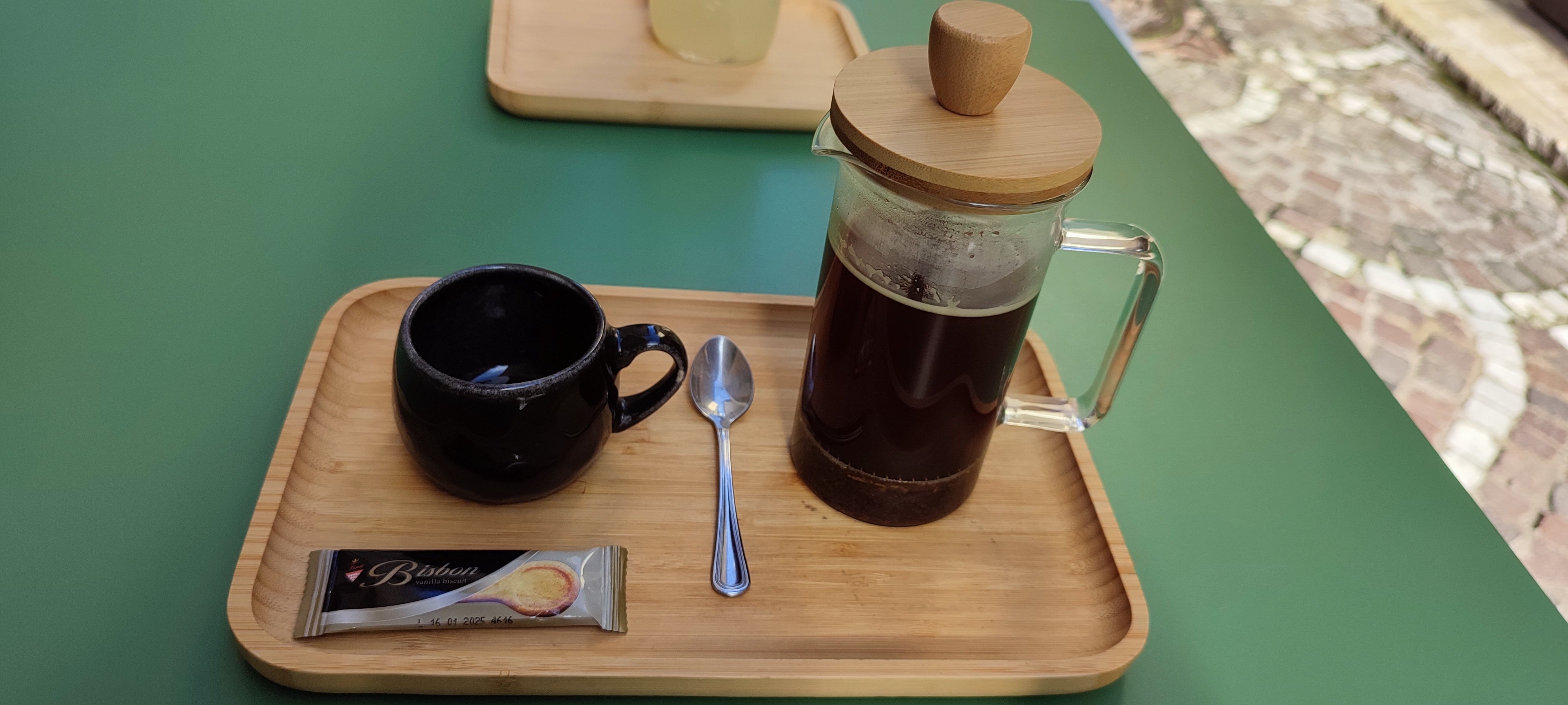 Excellent café à presse française. Les œufs brouillés sont délicieux ! Les propriétaires sont super sympas et accueillants.