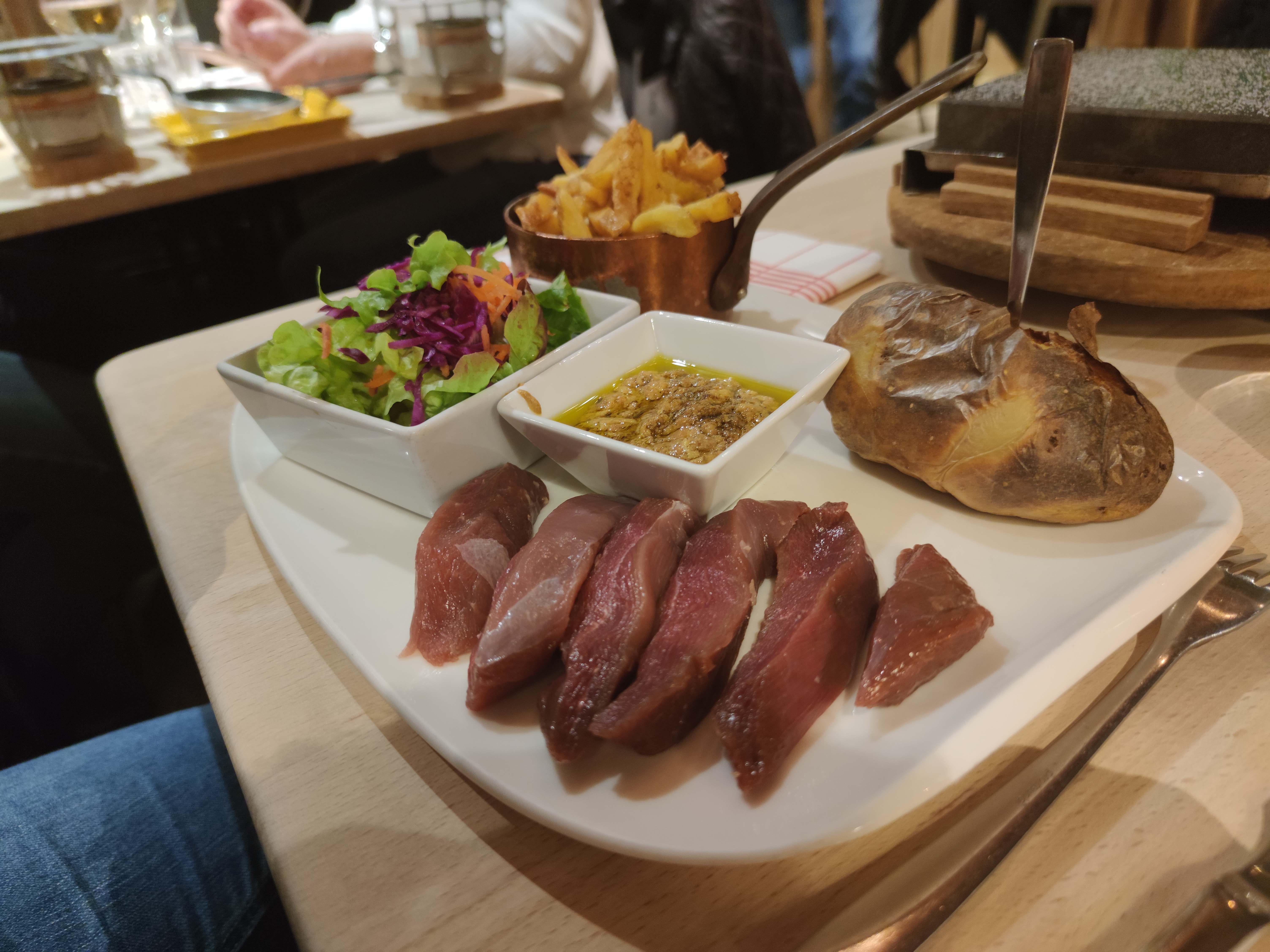 Très bon fromage à raclette (morbier). Un peu déçue de la qualité de la charcuterie par contre. Assiettes très (trop ?) copieuses Cocktail sans alcool aux fruits excellent !