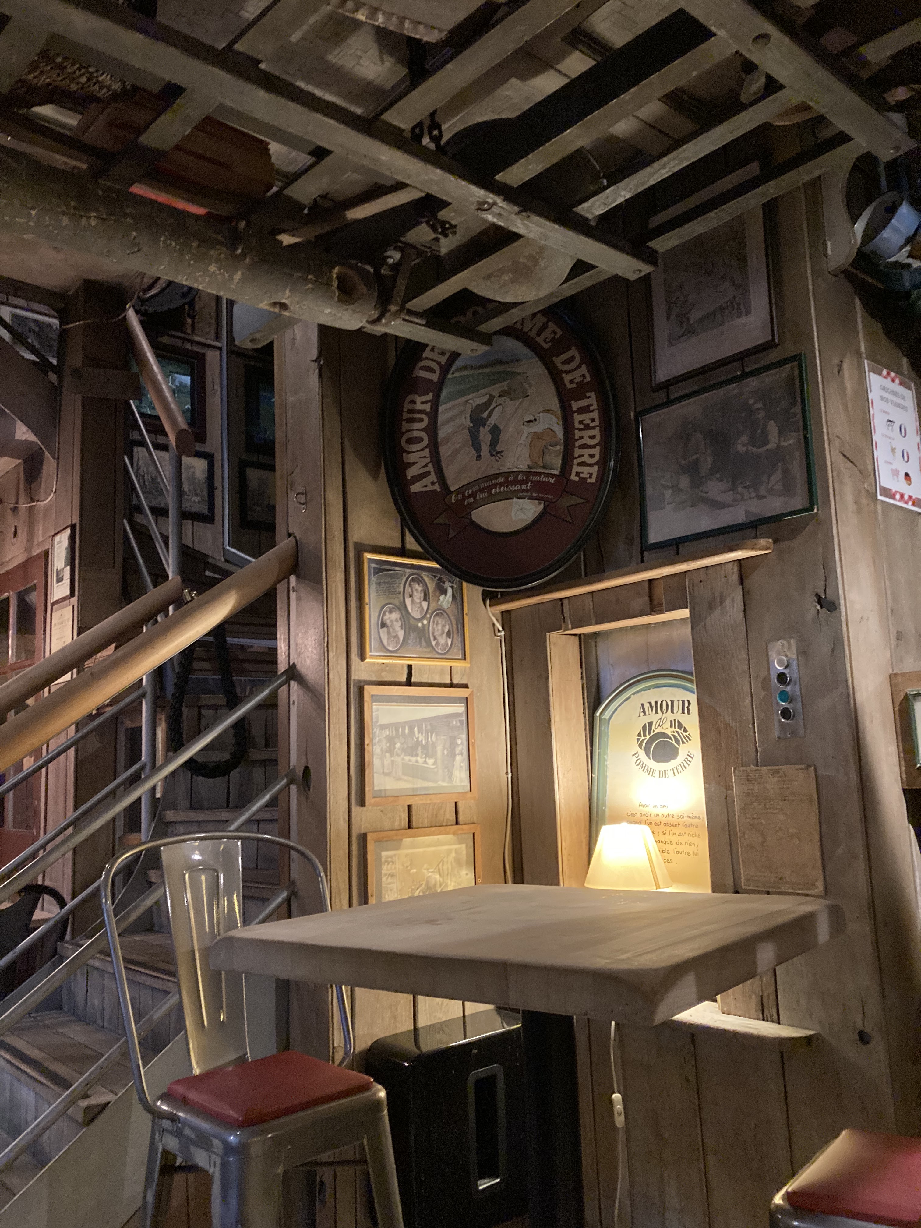 Le lieu est toujours aussi atypique et la décoration originale. Dommage que les plats ne soient plus ce qu'ils étaient. Déçue de la baisse de qualité ,la cuisine reste une cuisine trop simple .le personnel est très agréable. Les tables trop petites pour deux.