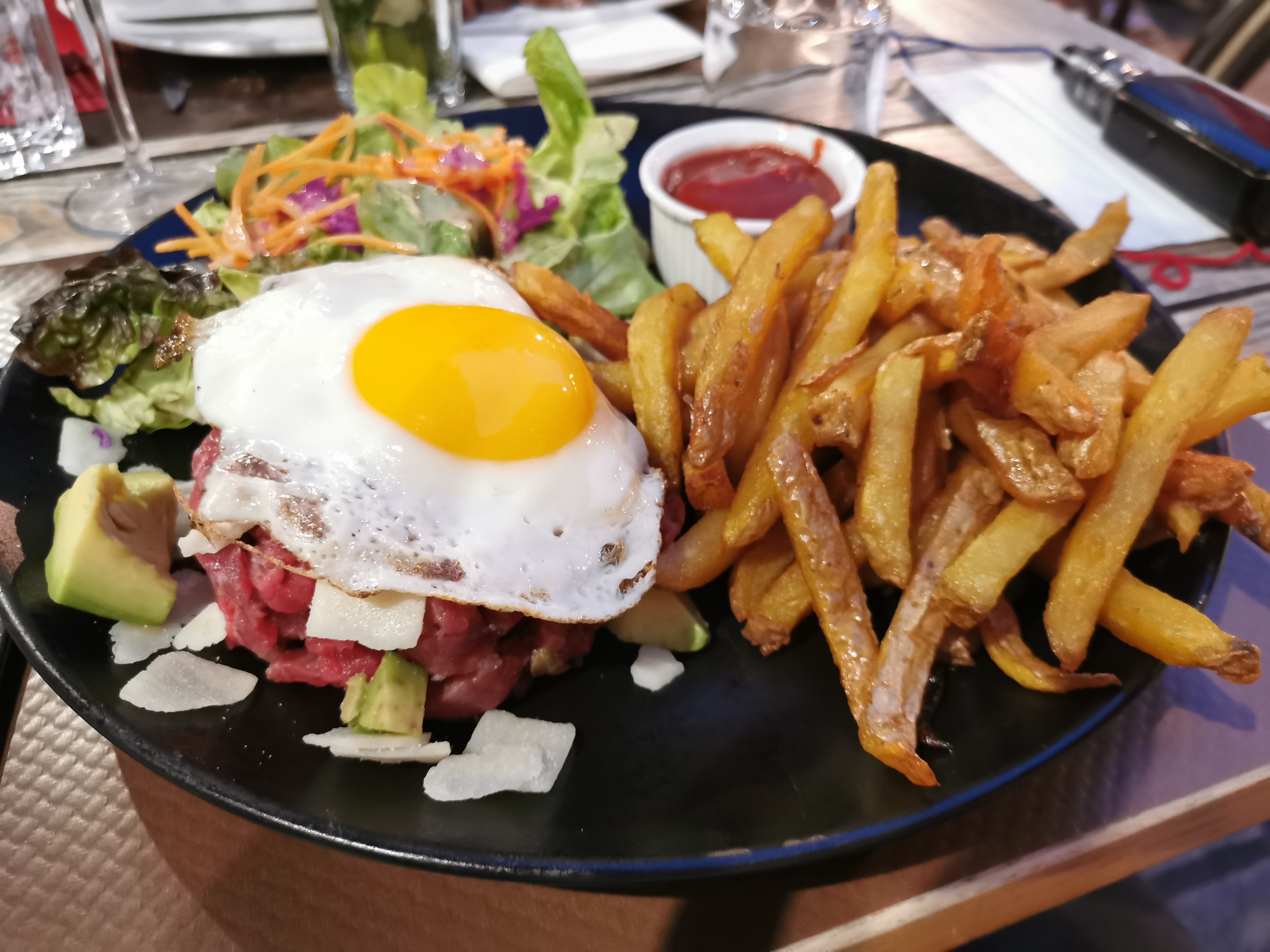 Endroit super, serveur, gérant,vraiment sympa, et dynamique. Choix a la carte où au menu, divers. Mais bien tenu. Un tartare comme je les aime, coupe au couteau, viande excellente. Enfin vraiment passe un super moment appréciable, surtout dans le jus, car monde il y avait, et sans panique ils ont respecter chaque client. Je recommande vivement. Bravo Bonne continuation à vous. A très bientôt. Cdt Olivier S