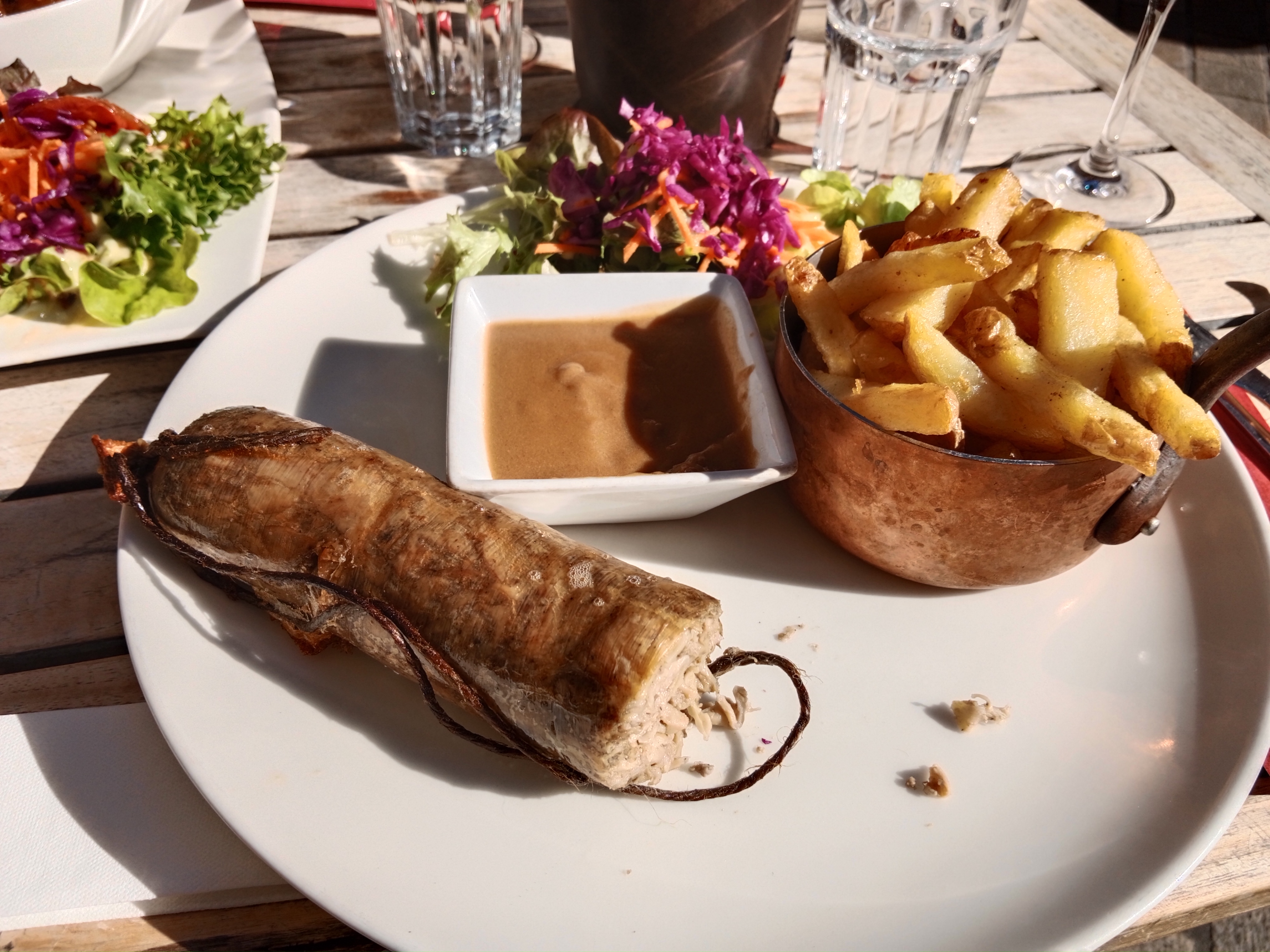 N'est plus du tout un bon restaurant. Suivre son chemin... Salade pas fraîche. Fromage enveloppé dans poitrine fumée très grasse, pas mangeable. Grande déception. Les serveurs très agréables et nous étions dehors en profitant du soleil, ce qui fût notre luxe. Dommage pour notre assiette...
