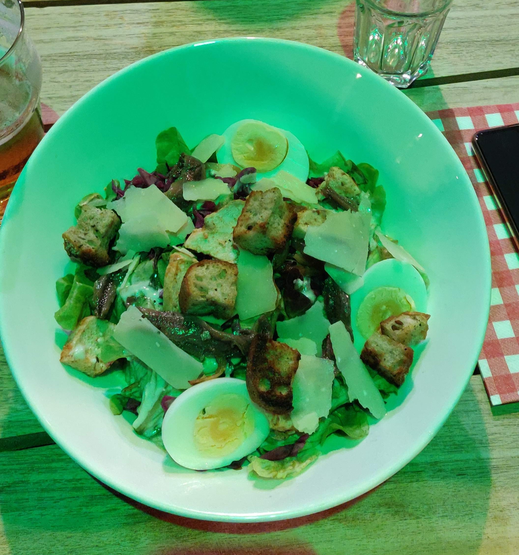 Salade César demandé sans anchois servie avec retour en cuisine juste pour enlever les anchois en aucune façon refaite inadmissible 🤨