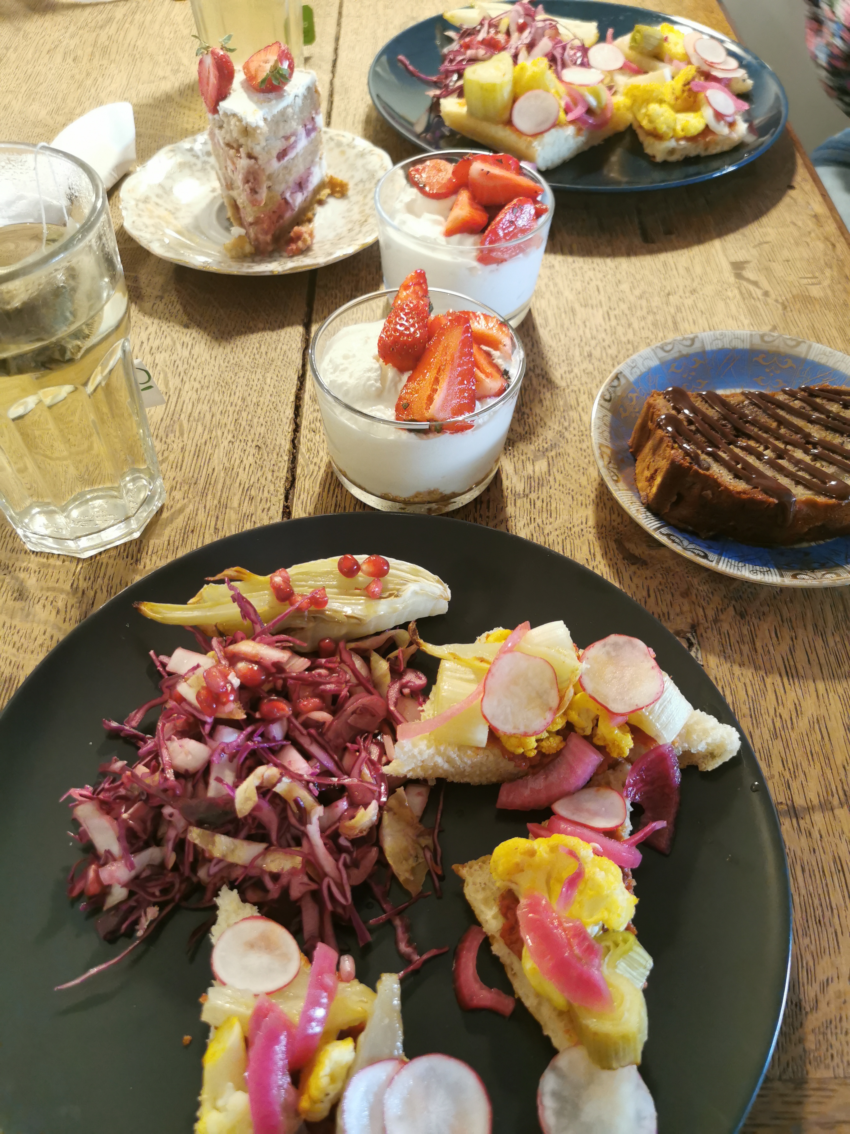 Première venue à l'occasion d'un brunch. Accueil très sympa et quel plaisir de profiter d'un délicieux brunch végétarien ! (qui a même convaincu les non-végétariens !). Je n'ai qu'une seule envie maintenant : y retourner pour découvrir les repas du midi, les pâtisseries à l'occasion d'une pause café et profiter du cadre très agréable de l'endroit ! :)