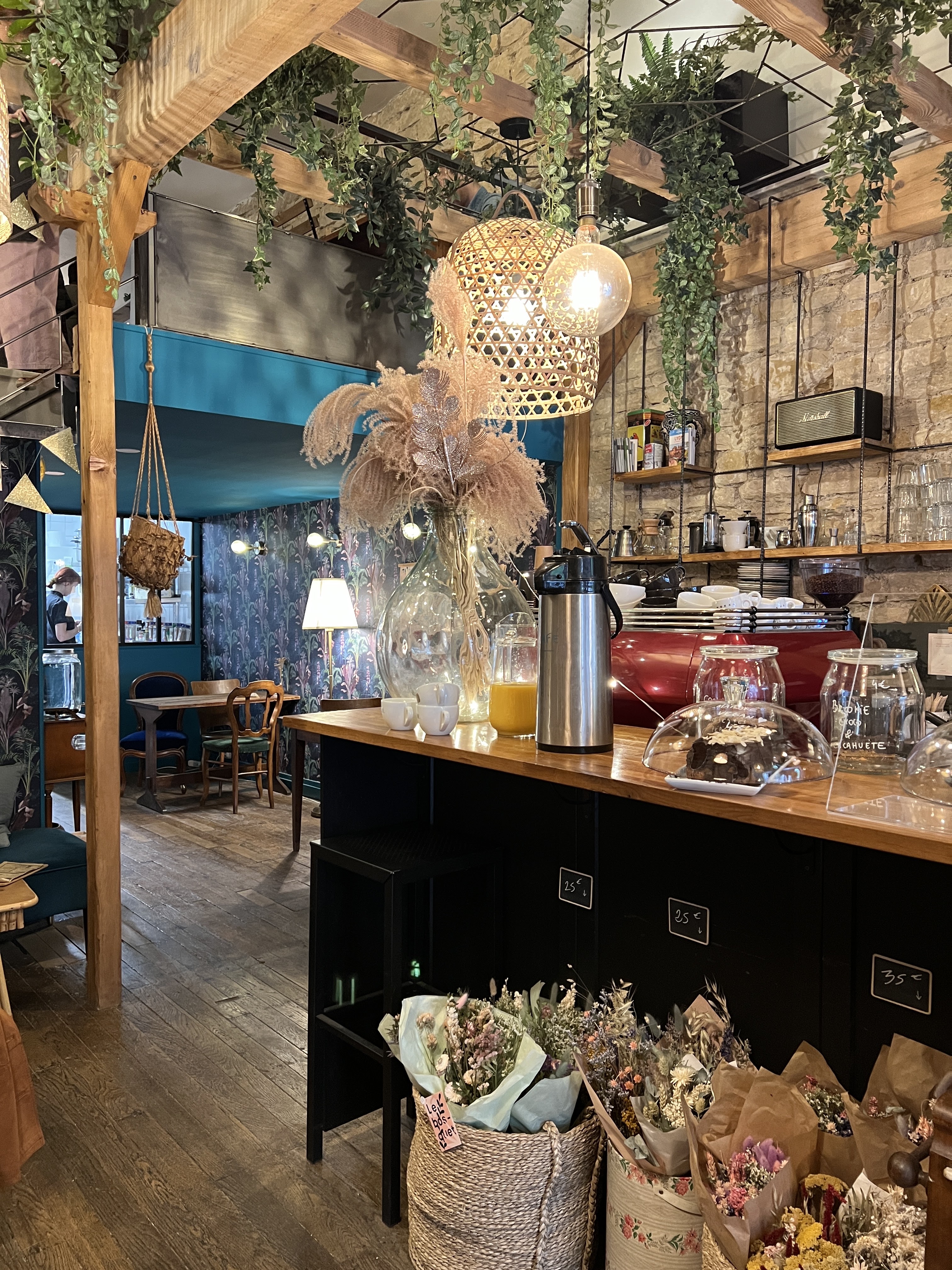 Leur déco est tellement géniale qu'à chaque fois je dis que je vais leur piquer des idées Thés et gâteaux à se damner et les déjeuners tellement délicieux et colorés pleins de bon nutriments et préparés avec passion ça se voit et ça se sent! Trop trop miam ! En plus on trouve des idées de cadeaux dans le petit marché de bijoux, cartes, bouquets etc Si seulement c'était plus proche du centre j'y serais fourrée tous les jours pour mon goûter