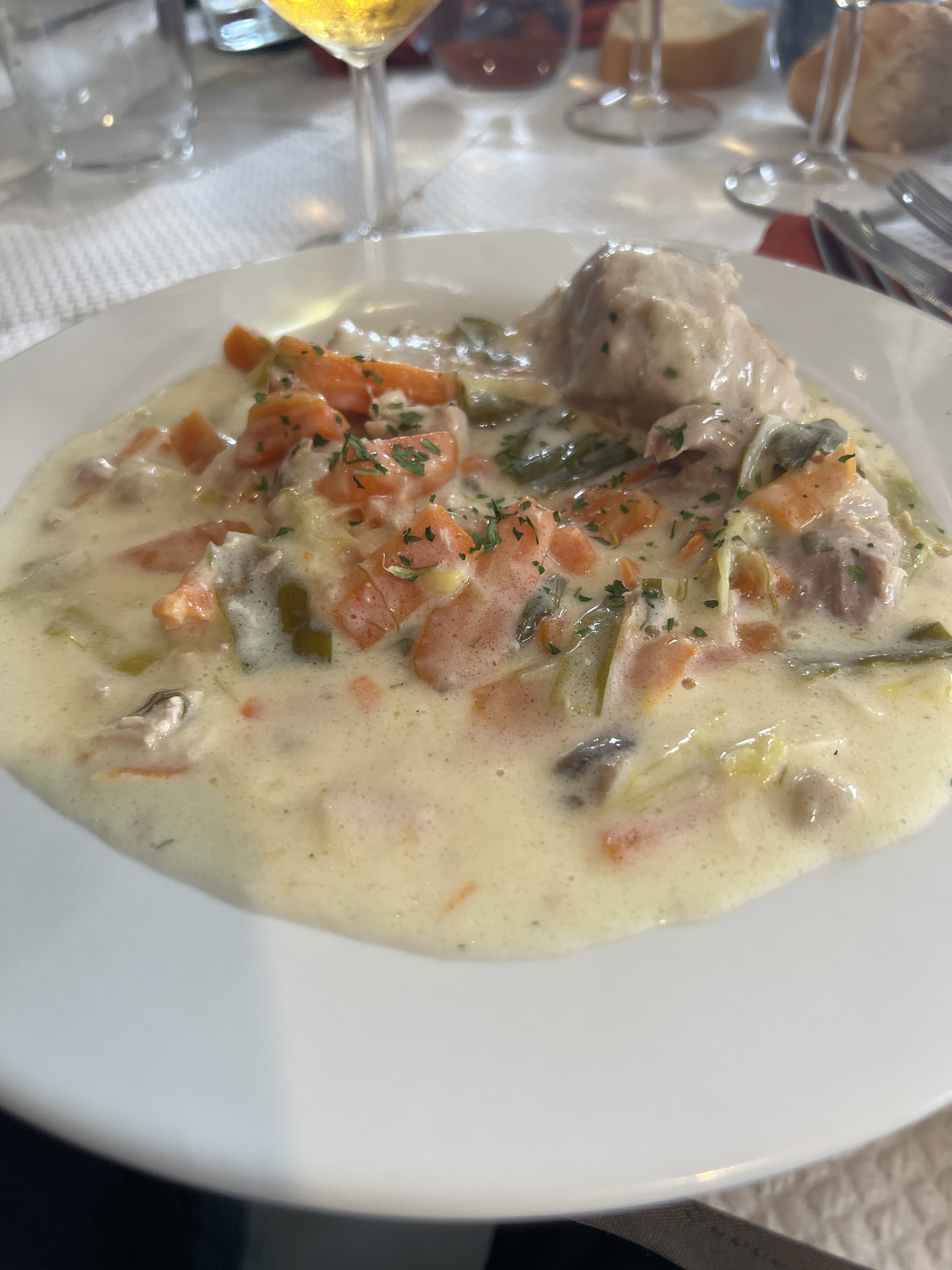 Personnel extrêmement sympathique, accueil très chaleureux, une délicieuse terrine nous a été offerte à l’apéritif. Les plats sont copieux et délicieux. Découvrir ce genre d’établissement est une vraie chance. (A Paris il y a des bouchons, ici on debouchonne.)