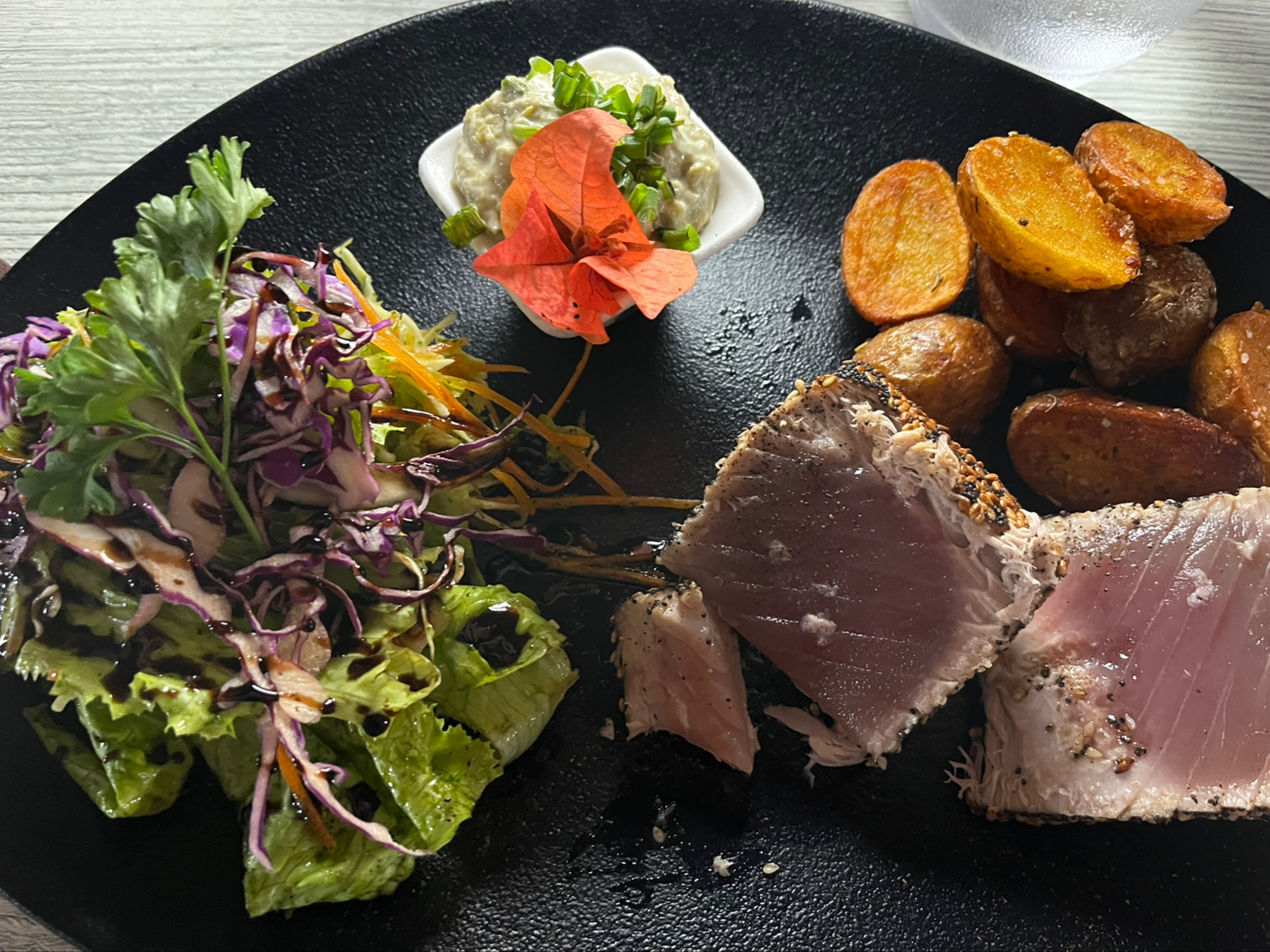 Accueil parfait. Personnel souriant et agréable. Quant aux plats... Ce thon mi cuit. Une merveille. A faire.