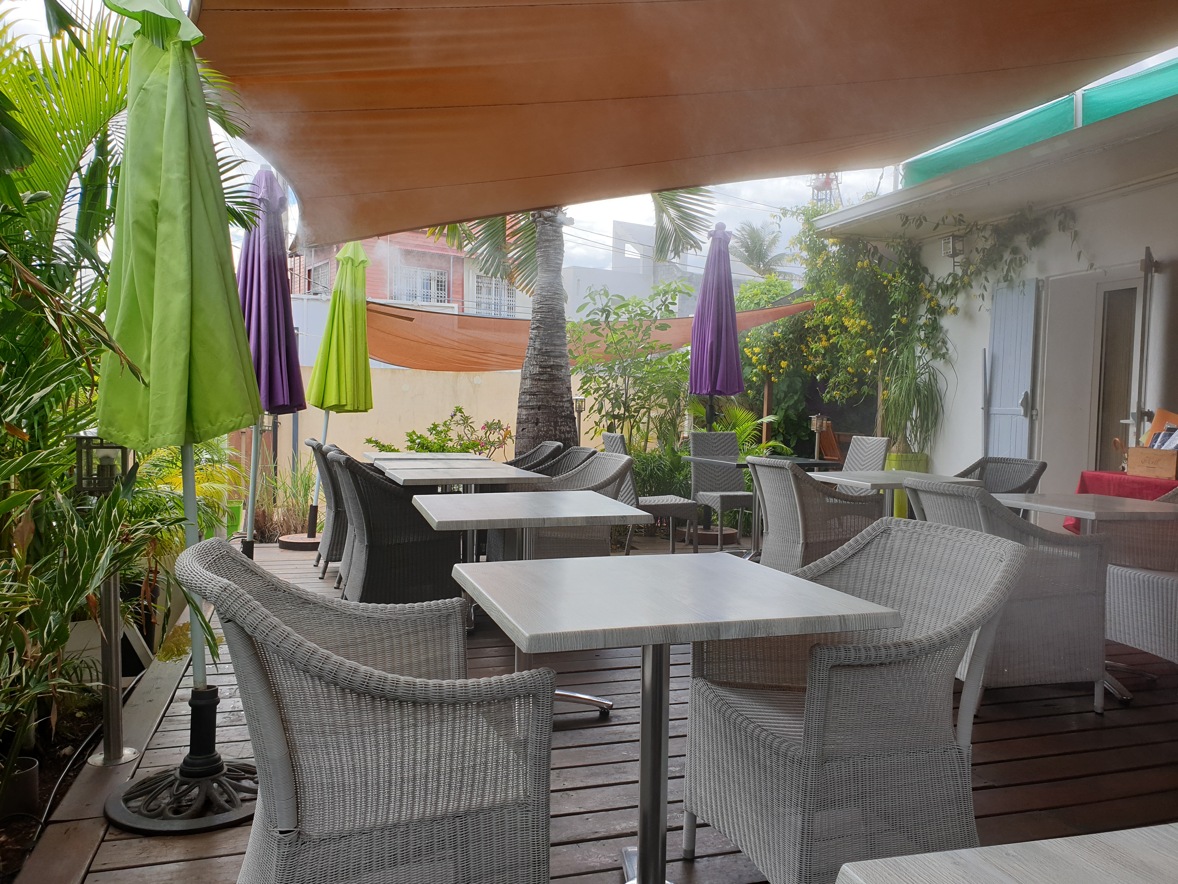 Très bon restaurant avec une sympathique terrasse, où de petits brumisateurs d'eau vous permettent de manger légèrement au frais
