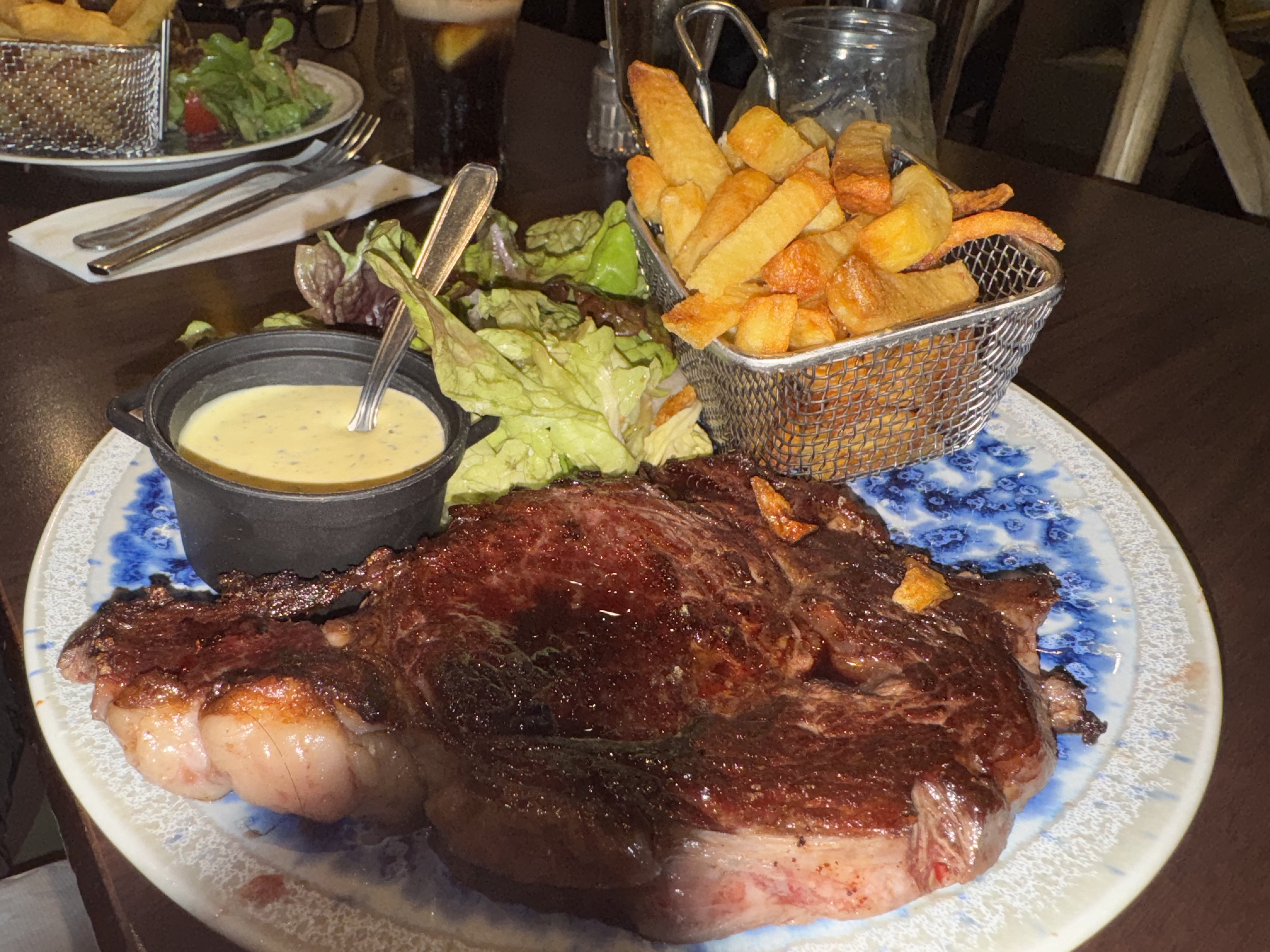 Poulet à la portugaise très sec et sans saveur. Le tartare de boeuf pas relevé trés fade. Les accompagnements : salade (melanges des sachets de supermarché) avec une goutte de vinaigrette et frites surgelés. Nous nous sommes pas du tout régalés et nous avions encore faim. Les prix sont elevés pour la quantité et qualité proposée.